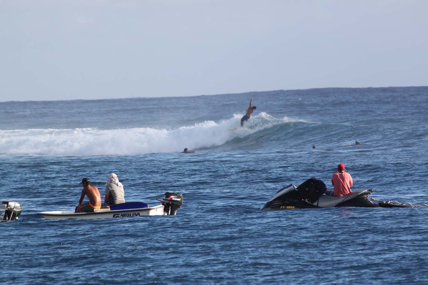 Nous ne sommes pas sûrs de revenir pour la compétition qui commence en fin de semaine, car les prévisions de houle sont à la baisse.