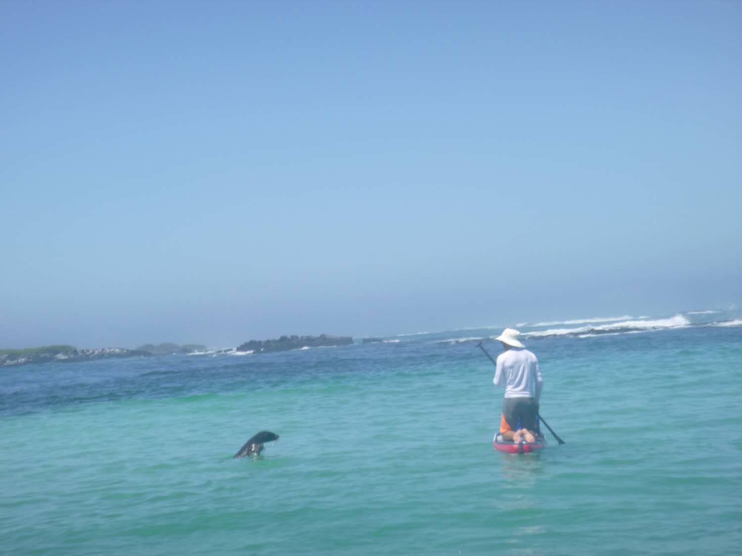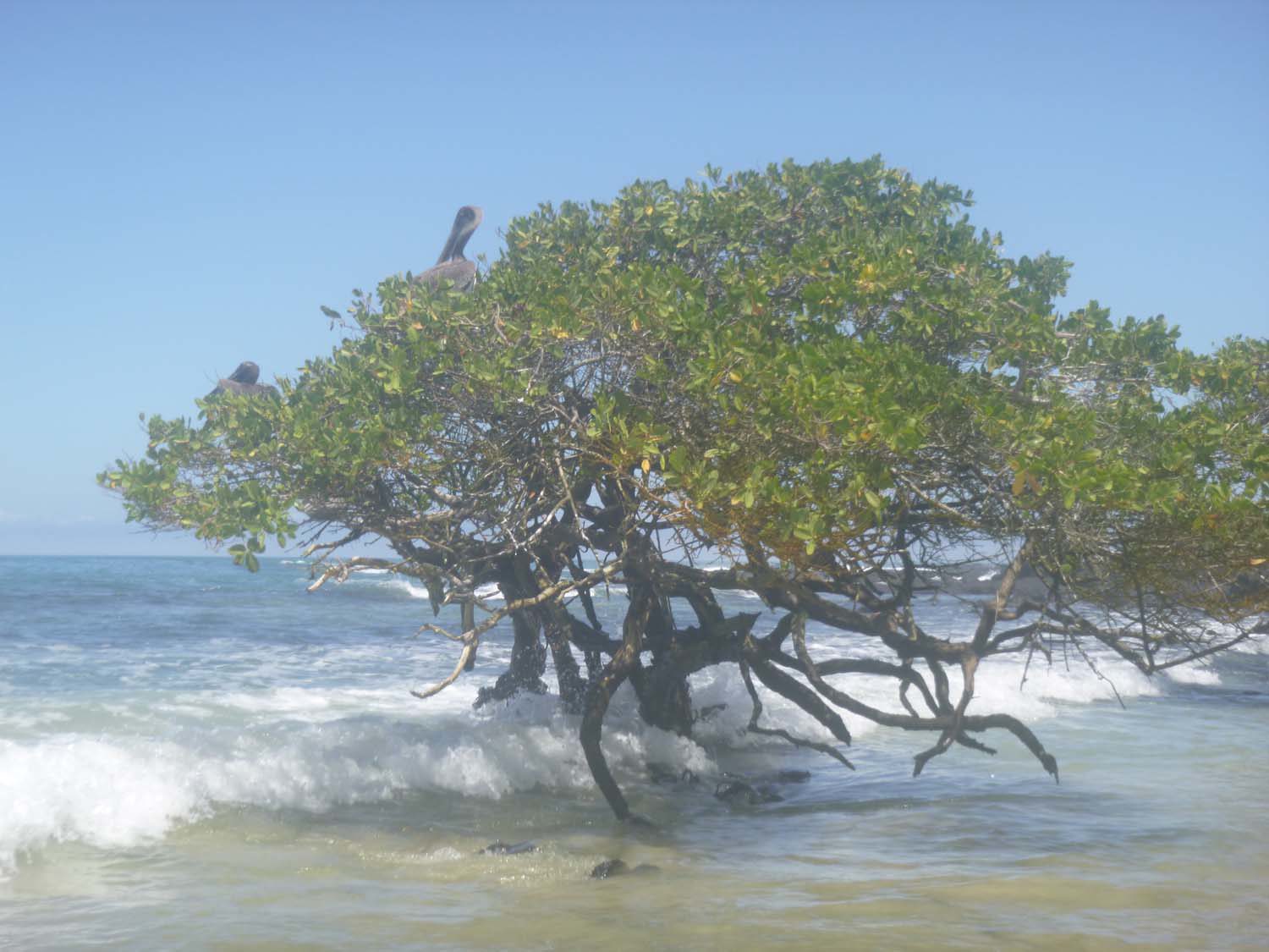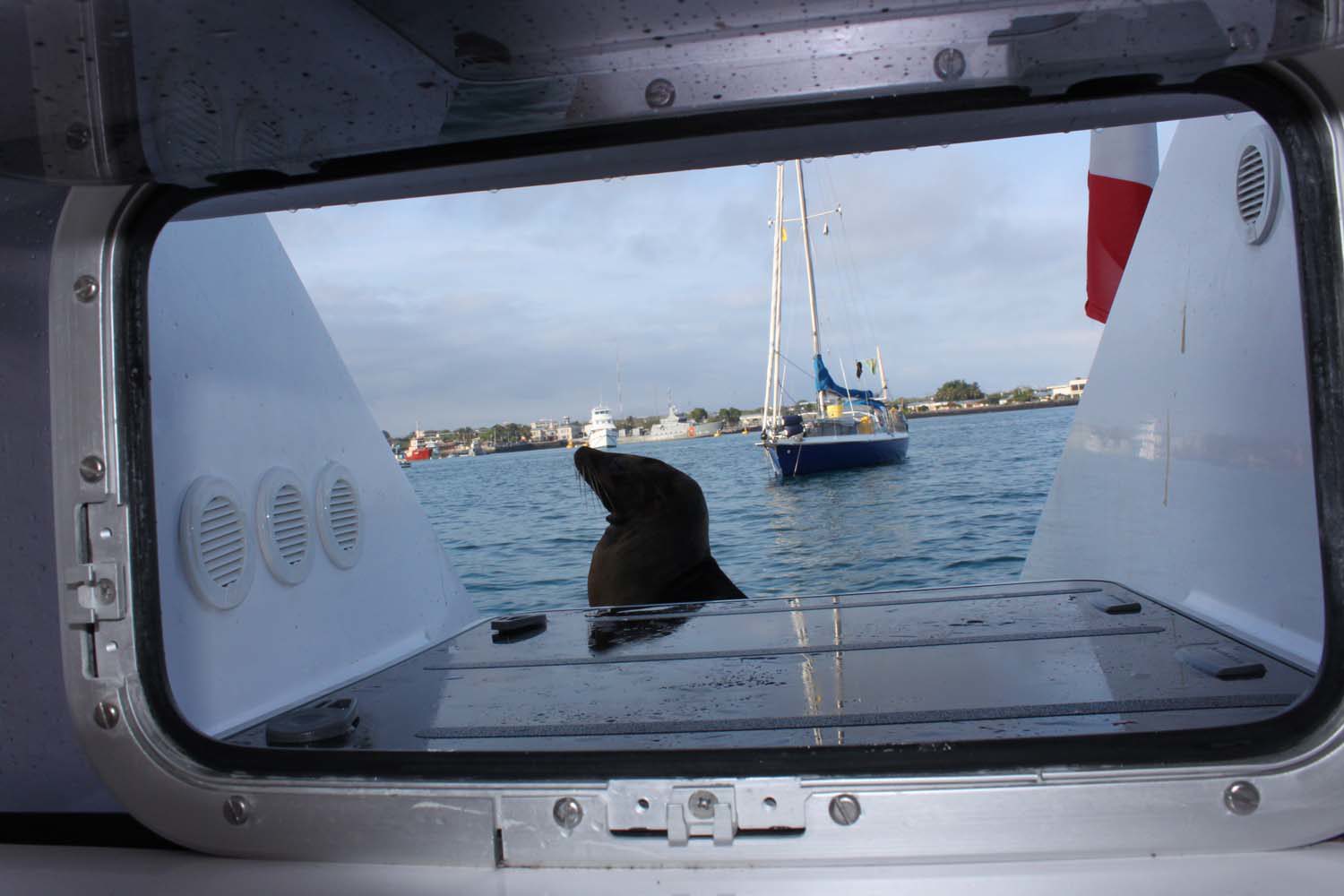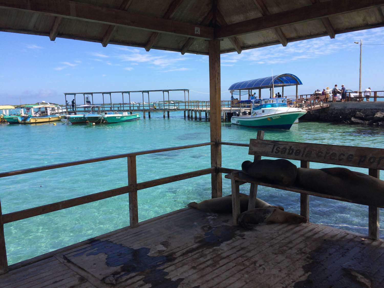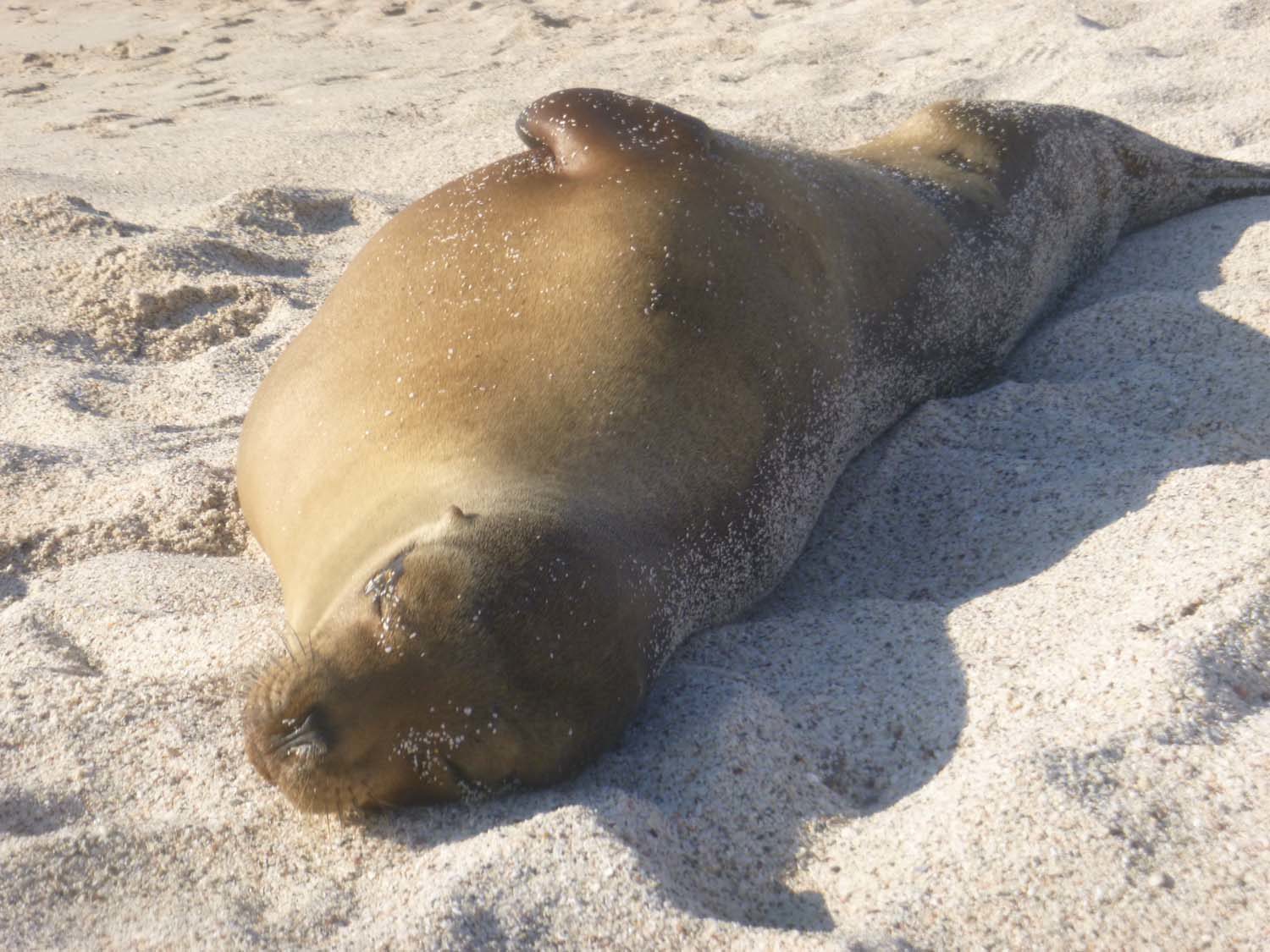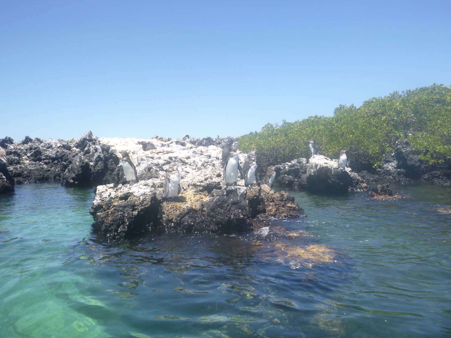 C’est notre premier contact avec les iguanes marins, qui ont des têtes et des corps impressionnants, très foncés de couleur, couverts d’écailles et d‘épines, avec un air patibulaire…. cependant, ils sont complètement inoffensifs puisque végétariens, et se nourrissant exclusivement d’algues : ils n’y a aucun risque de se faire croquer le pied! Ils sont en plus très lents, vraiment aucun risque donc!