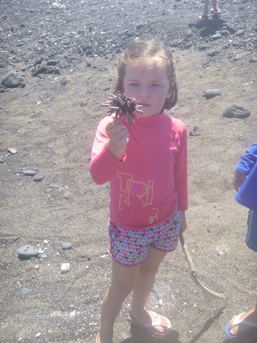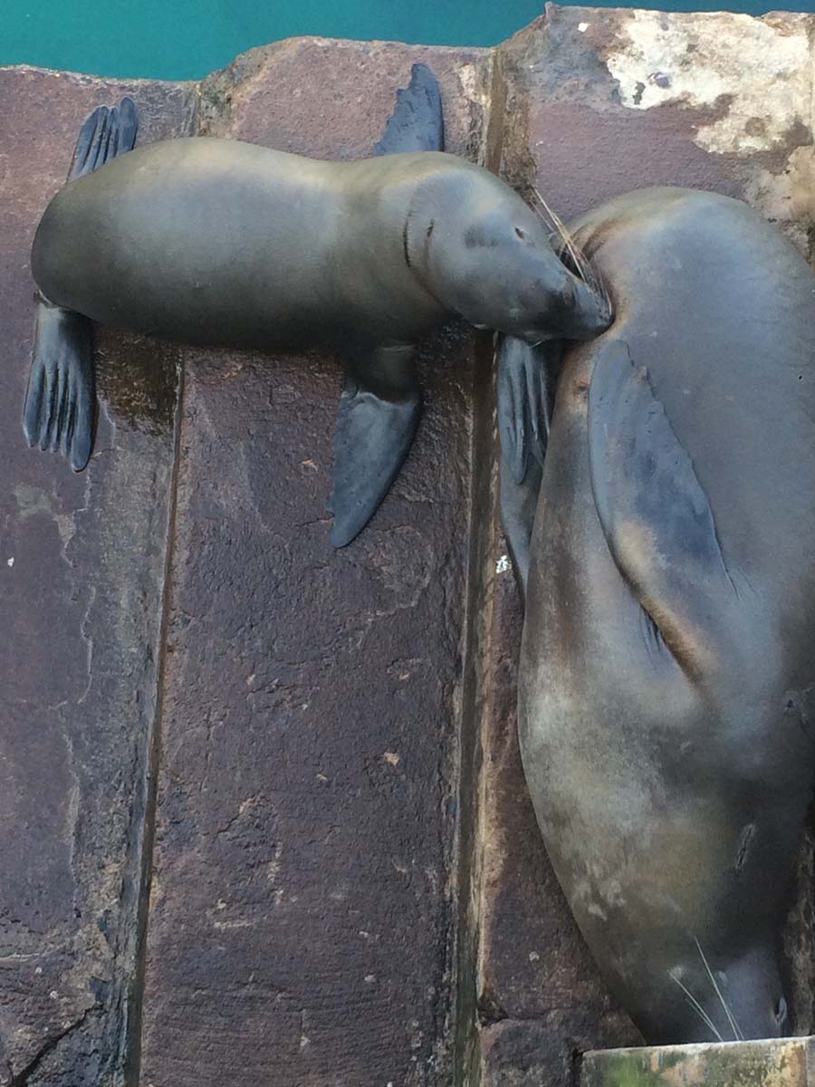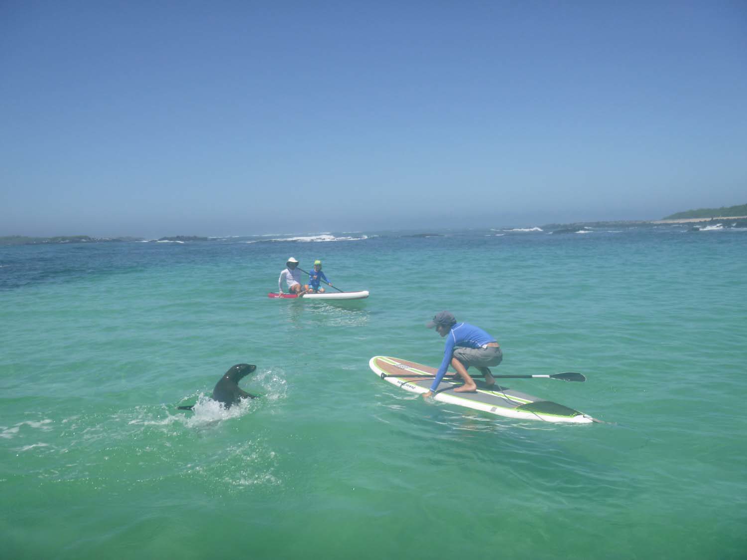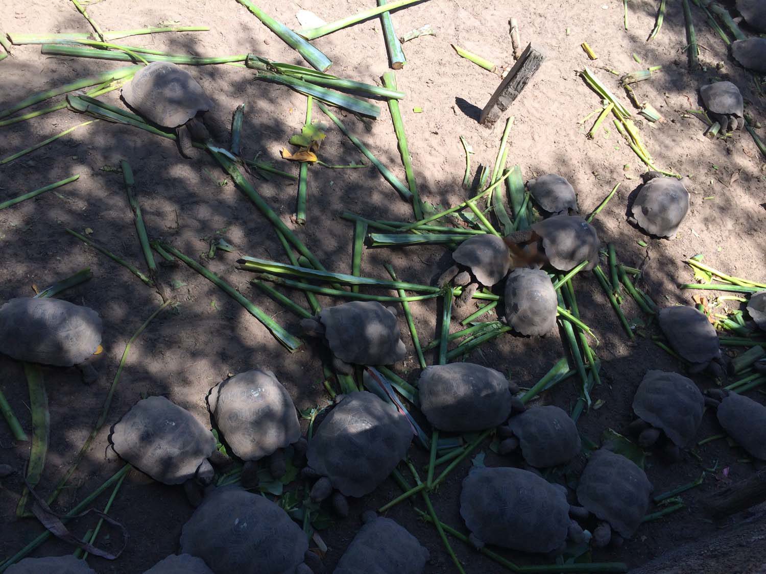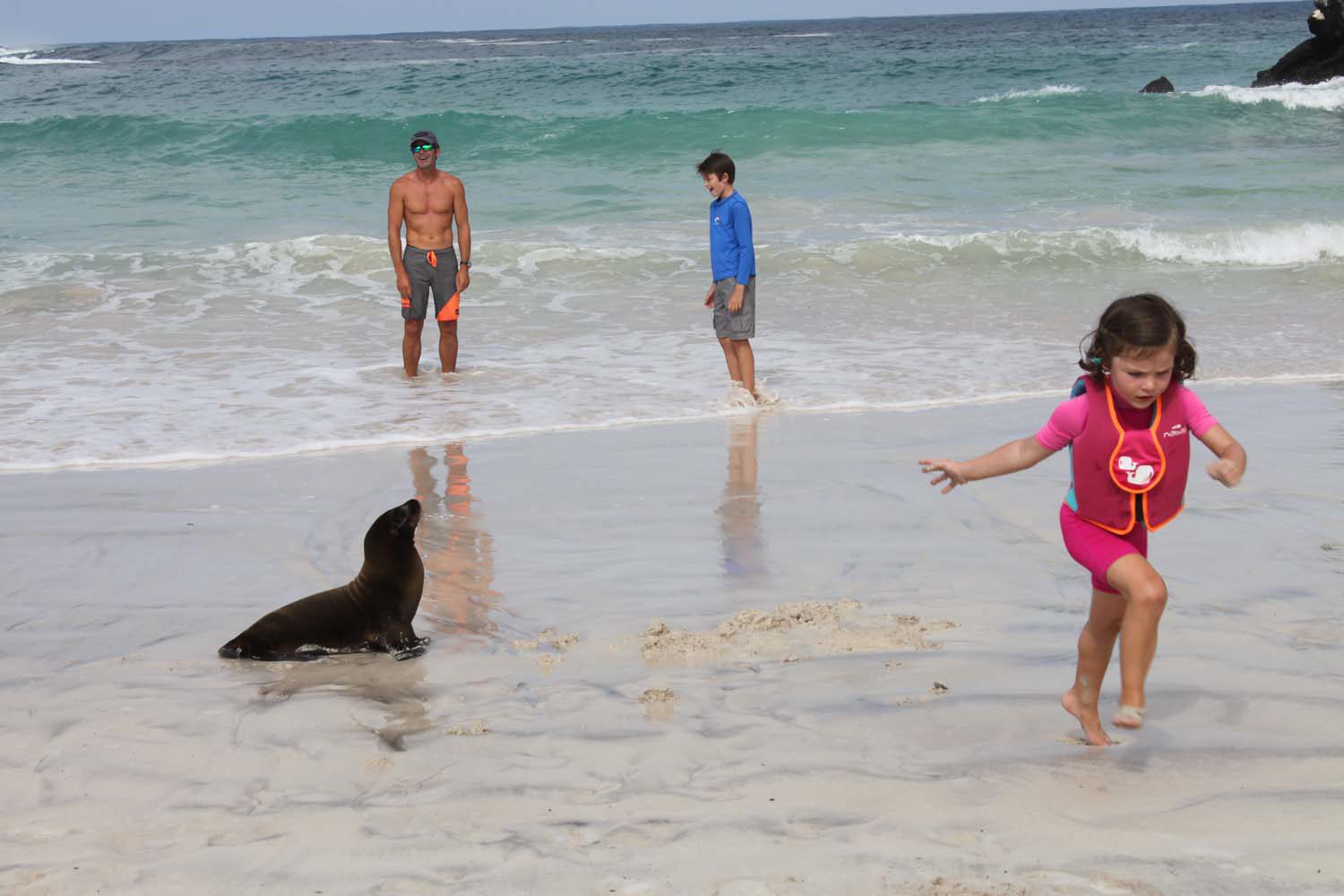 C’est notre premier contact avec les iguanes marins, qui ont des têtes et des corps impressionnants, très foncés de couleur, couverts d’écailles et d‘épines, avec un air patibulaire…. cependant, ils sont complètement inoffensifs puisque végétariens, et se nourrissant exclusivement d’algues : ils n’y a aucun risque de se faire croquer le pied! Ils sont en plus très lents, vraiment aucun risque donc!