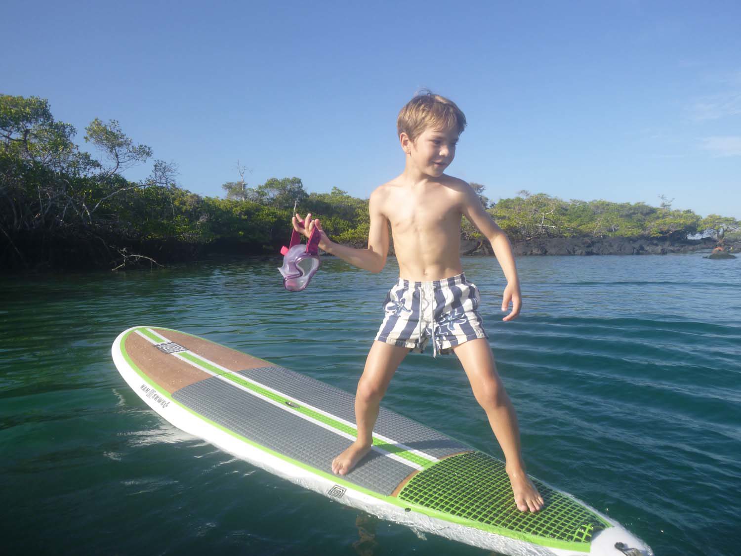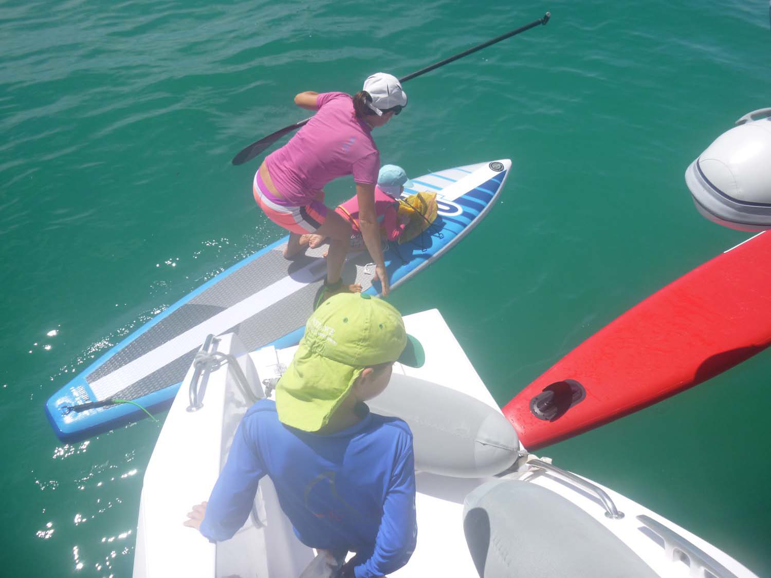 Comme il n’y a pas de courant, nous allons tous à la plage en palmes, masque et tuba : cela nous évite de mettre l’annexe à l’eau (puis de la remonter quand nous partirons d’ici une heure ou deux). L’opération prend entre 5 et 10mn au total. Et nager fait faire un peu de sport!