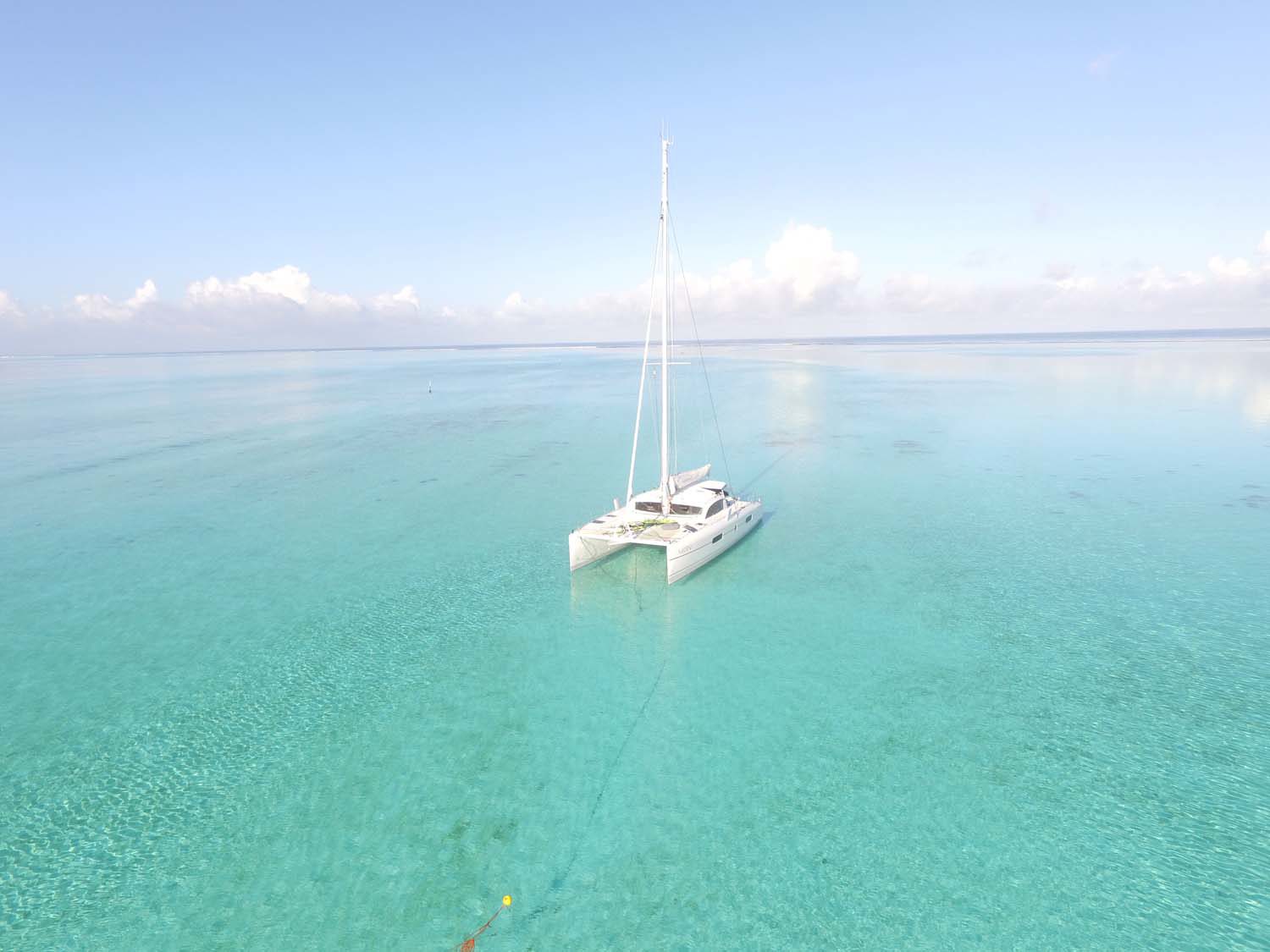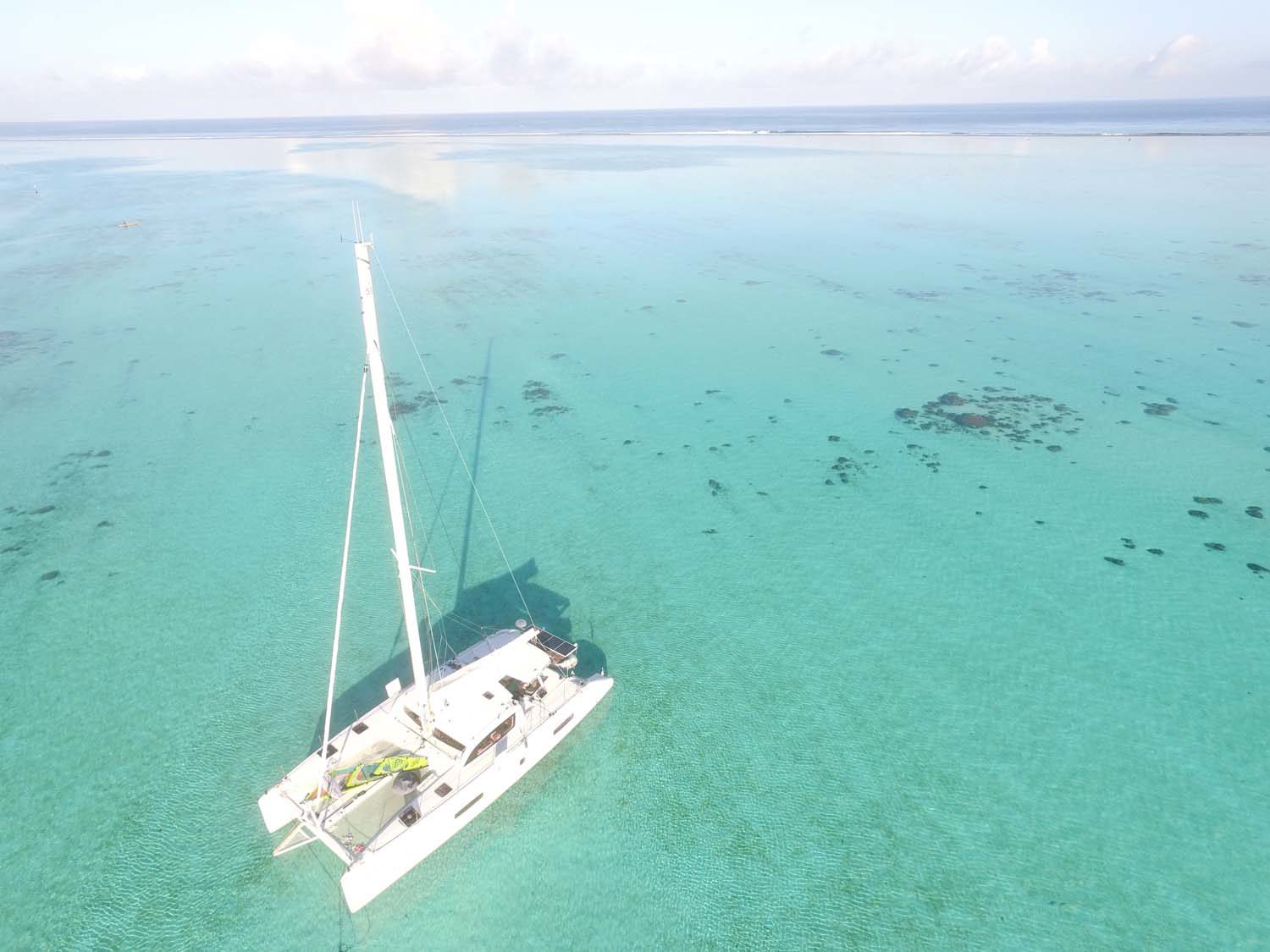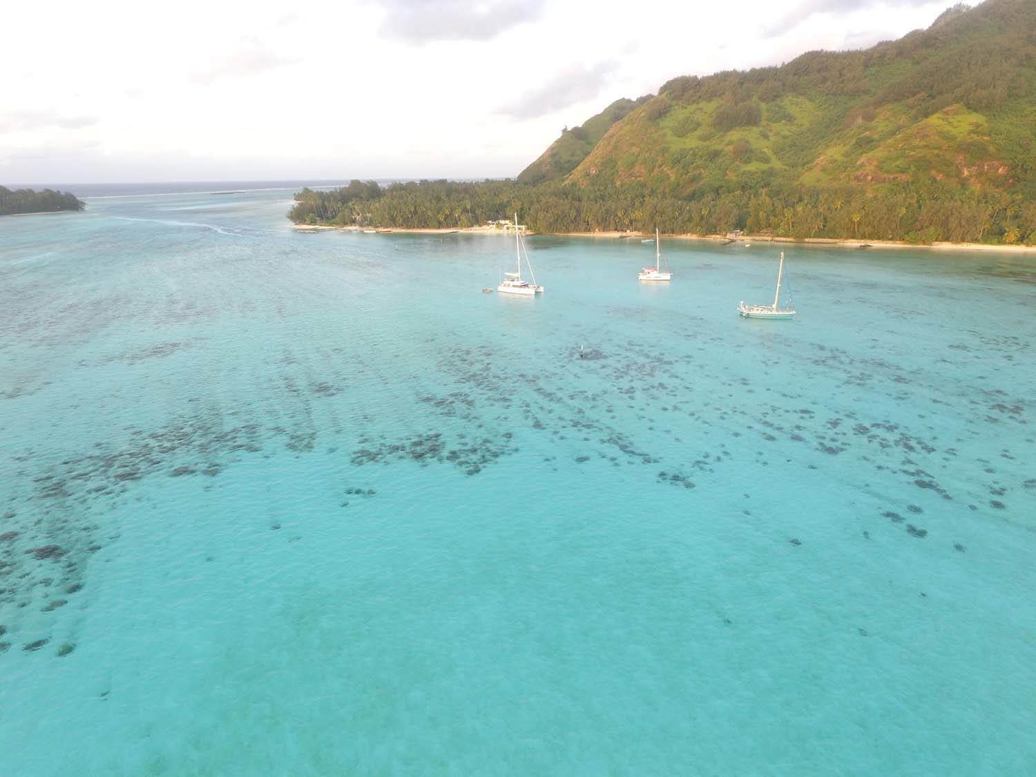 Dans quelques longueurs nous entrons dans du turquoise clair signe que nous n’aurons plus que 2m d’eau sous les coques!