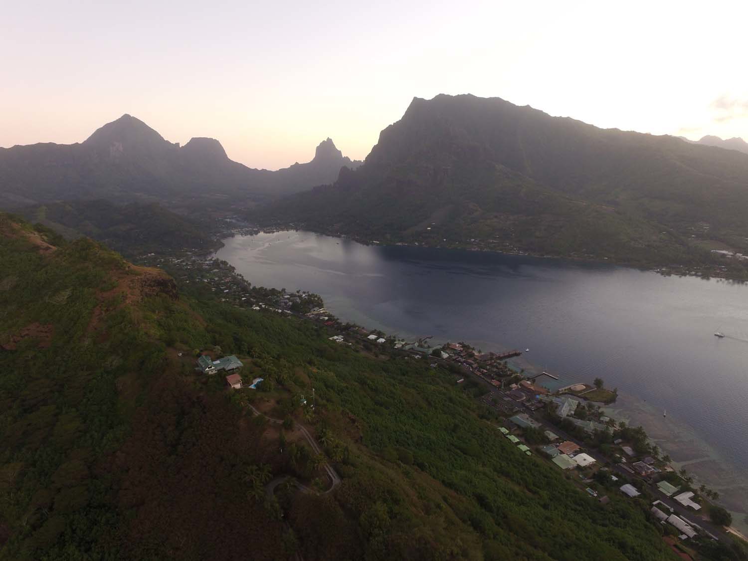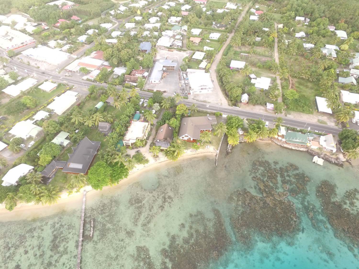 A midi, Loïc envoie le drone, pour voir île d’en haut : pas de luxueuse villa, mais de petites maisonnettes, un ponton, et la piste, vraiment toute petite.