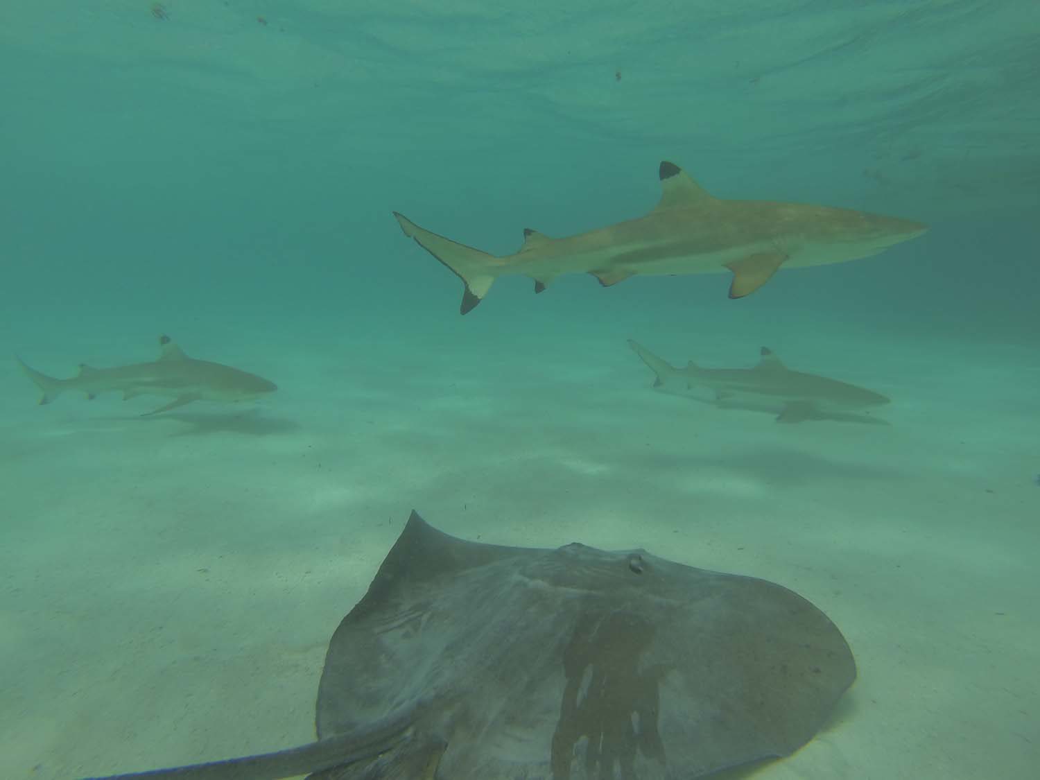 et mouillons pour la nuit sur un banc de sable devant la marina, réputée pour ses requins nourrice semi-apprivoisés.