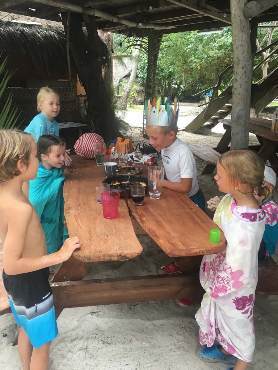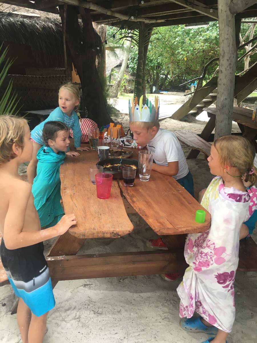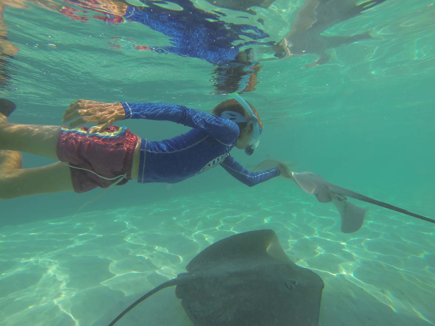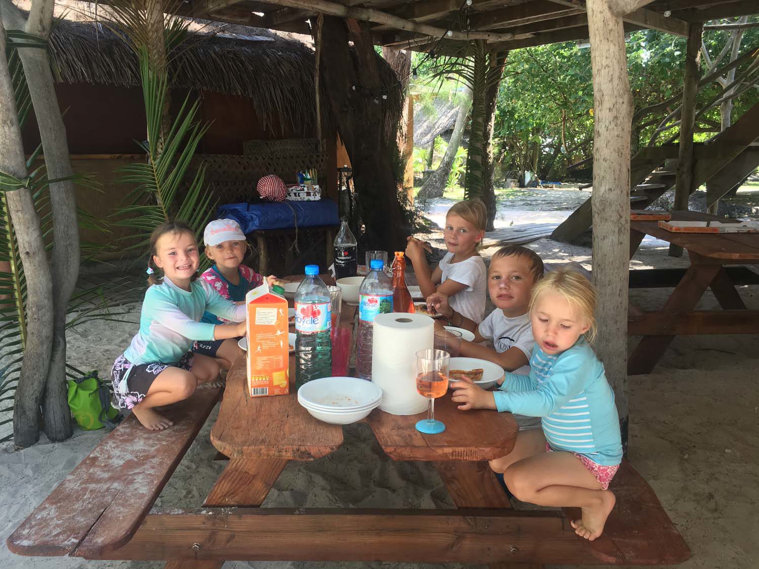Le matin, c’est école pour tout le monde, mais dans l’après-midi, nous partons à terre avec nos équipements de snorkeling explorer la plage de « Honeymoon’s Beach », sur la côte sud de l’île.