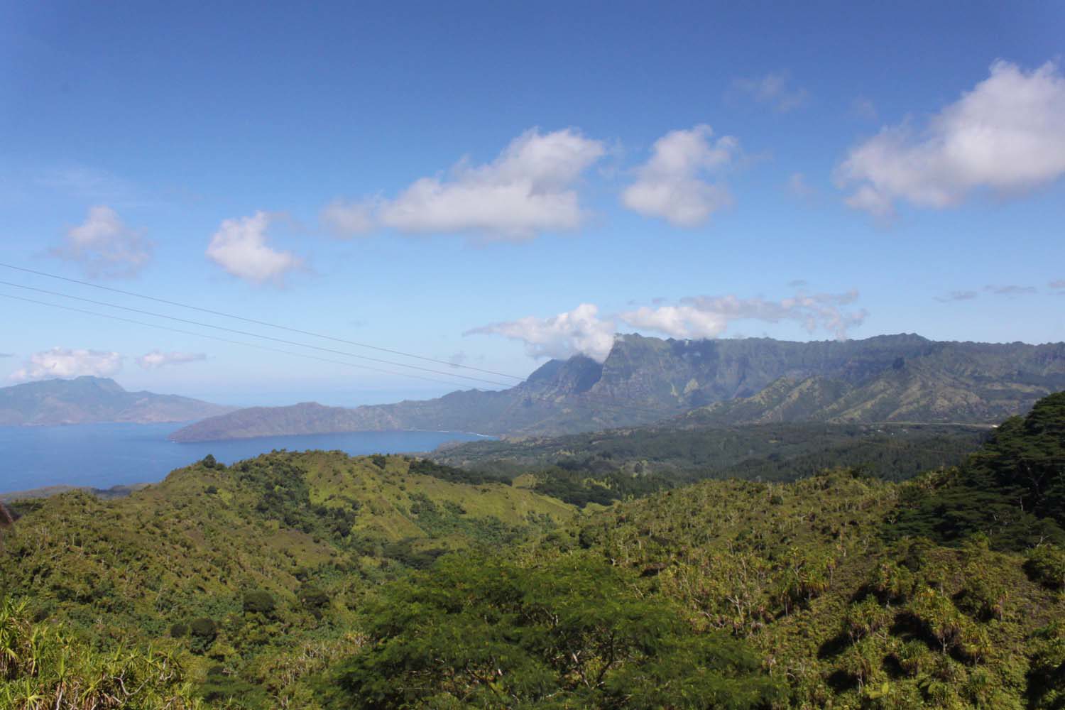 Le relief est omniprésent, la moindre baie recèle un ruisseau et une petite vallée, abritant le plus souvent des exploitant de coprah : car on vit surtout de la noix de coco, parfois d’autres produits comme l’exquis pamplemousse ou le Nonni, arbuste recelant un fruits aux vertus pharmaceutiques. Toutes les 3 semaines, le paquebot mixte Aranui (qui transporte aussi une centaine de touristes venus explorer les îles par la mer) fait escale dans ces petites vallées, chacune son tour, et récupère les sacs de noix de coco, de pamplemousses, les bidons de Nonni, ou des caisses de sculptures des artisans locaux qui seront exposés à Tahiti.
