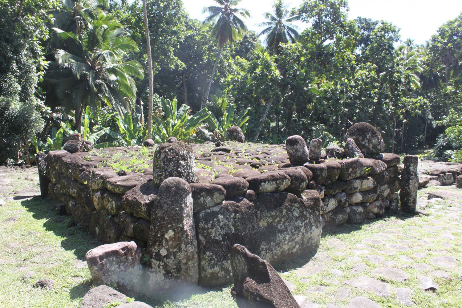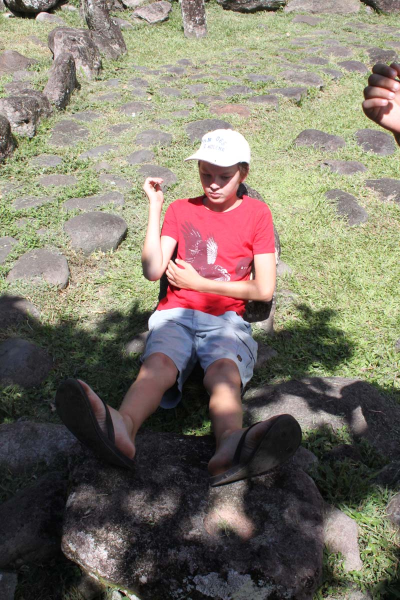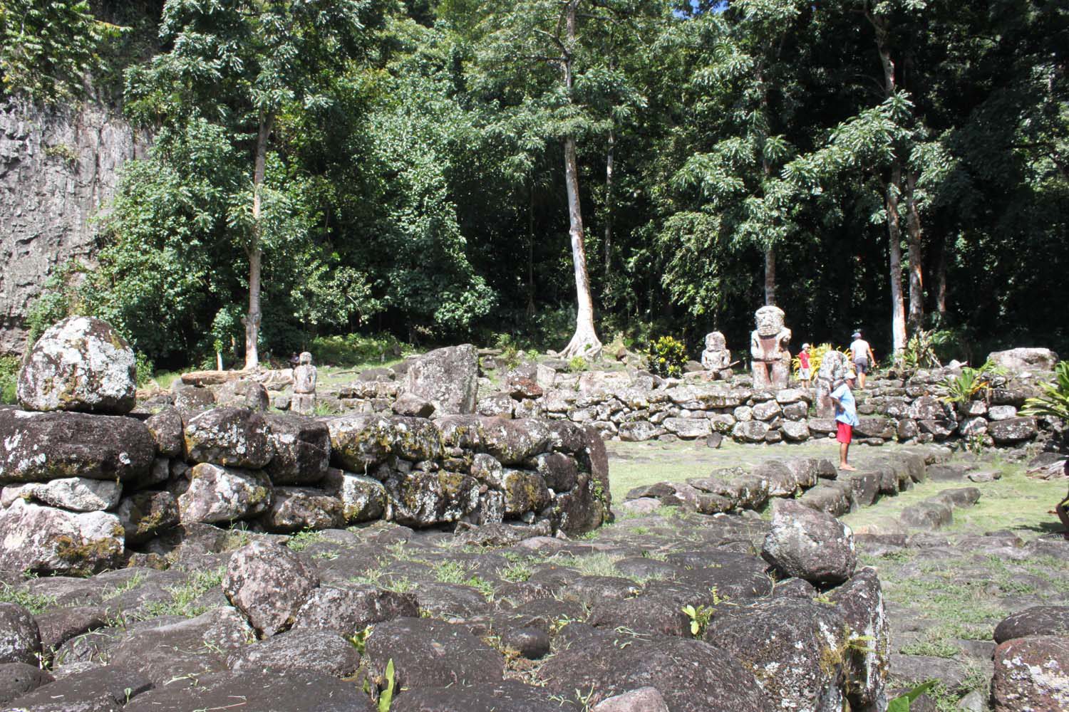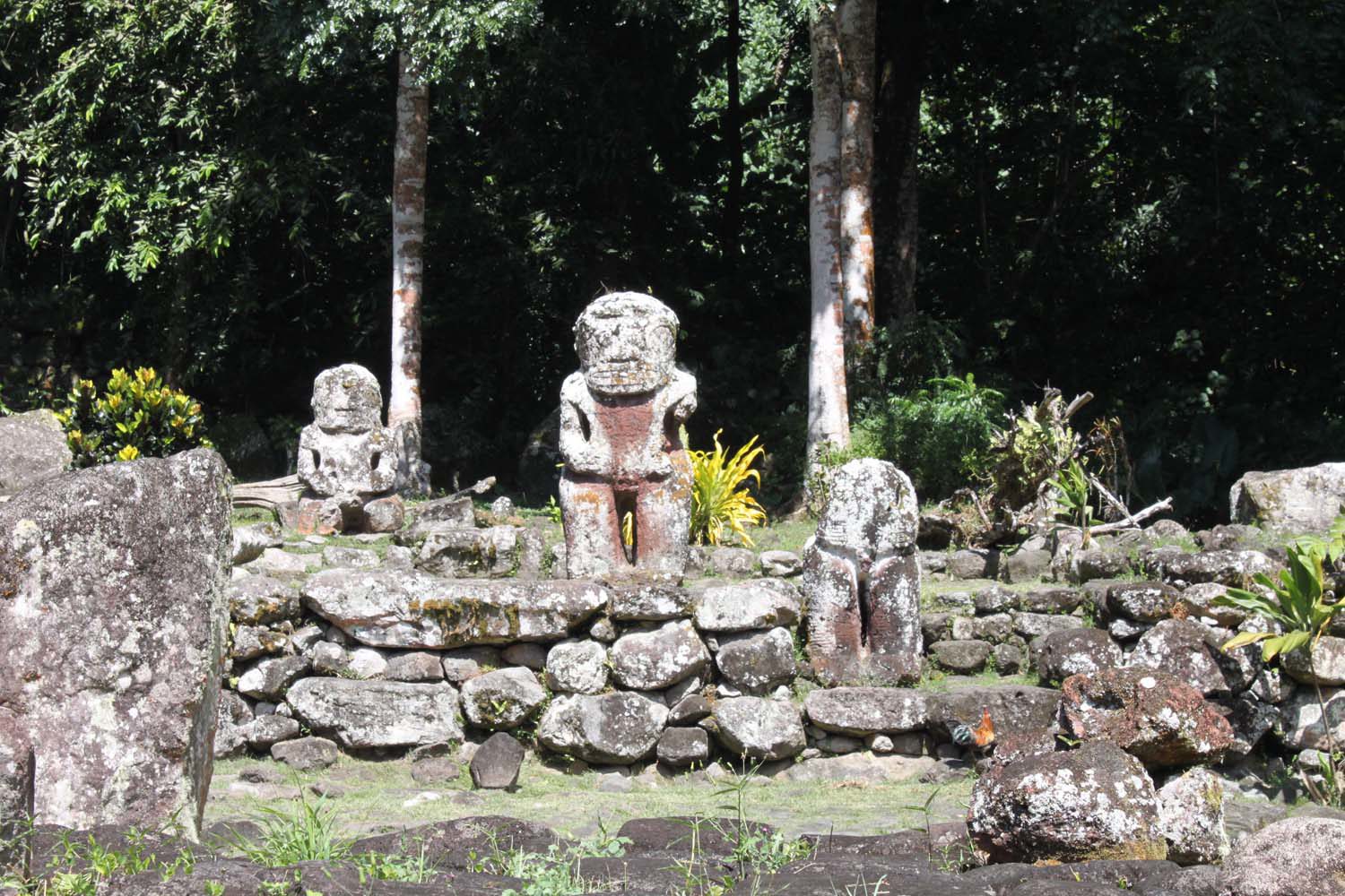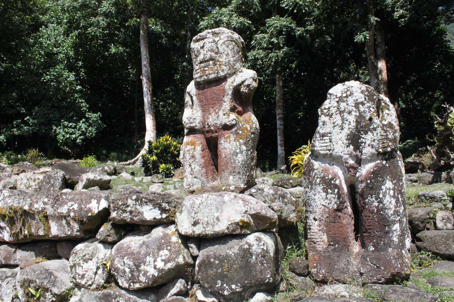 Le but principal de la journée, c’est le site archéologique de Paumau, abritant le plus complet marae de Polynésie , niché au pied d’un impressionnant piton rocheux.