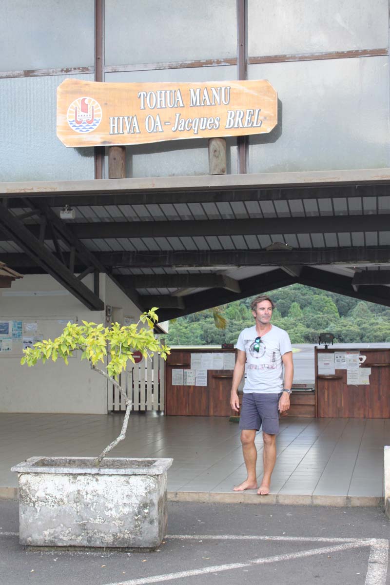 Nous profitons également de cette escale forcée pour aller explorer l’île avec John Ozanne, le seul taxi de l’île, et figure locale. Son grand-père est arrivée aux Marquises au milieu du siècle dernier, a épousé une marquisienne et tenu la seule boutique de l’île, qui accueillait en son temps Gauguin venu peindre la douceur polynésienne. Son père a repris le commerce, et a côtoyé Brel, venu y passer les 3 dernières années de sa vie, conquis par le charme et la douceur de ses habitants.