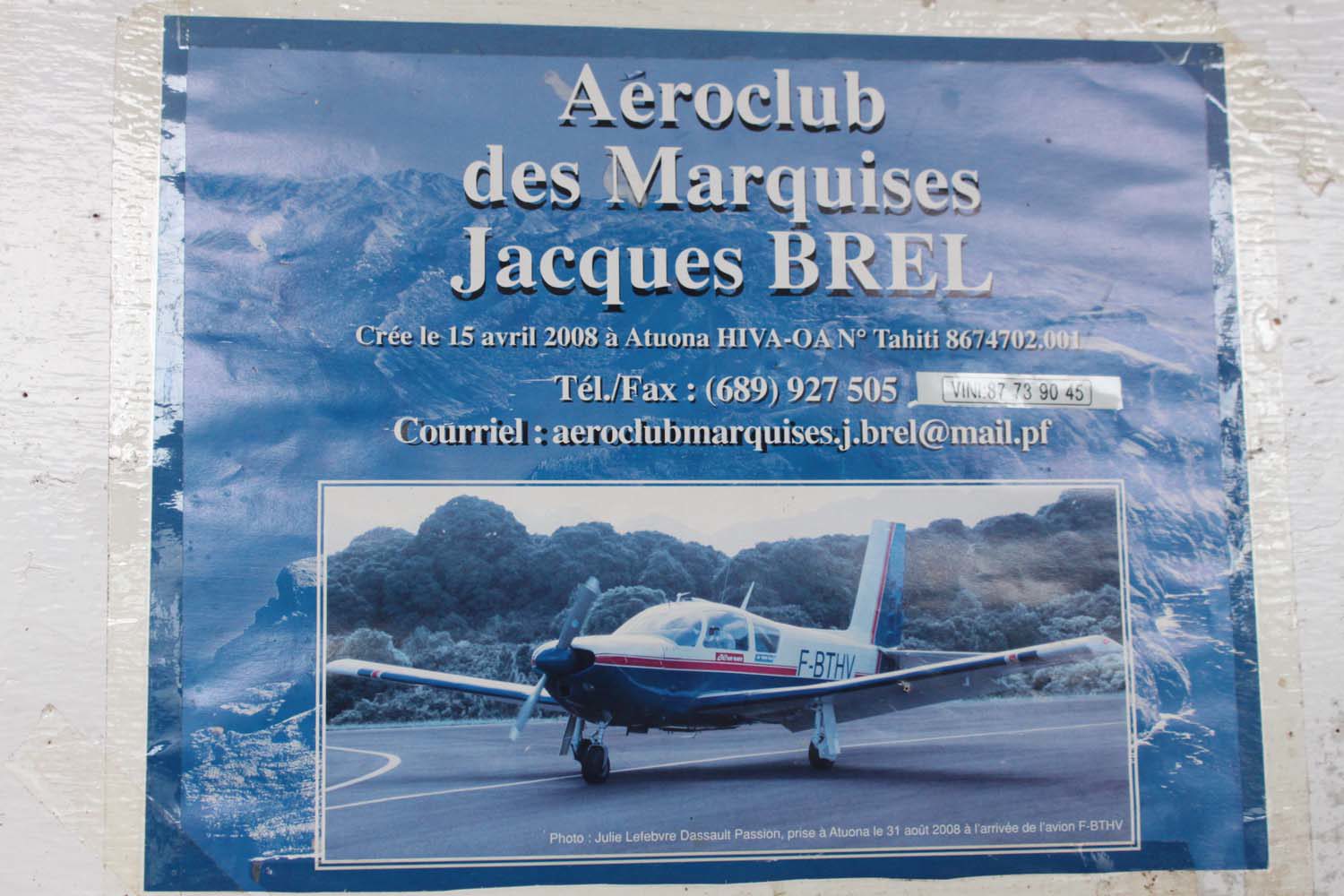 Impossible de ne pas s’arrêter visiter l’aéroport d’Hiva-Oa. Jacques Brel y avait son petit avion. Aujourd’hui, c’est Vincent, le mécano d’Air tahiti, et qui vient d’ouvrir un petit chantier de carénage bateau, qui a repris le hangar et l’activité de l’aéroclub : pour l’instant, c’est le seul membre!