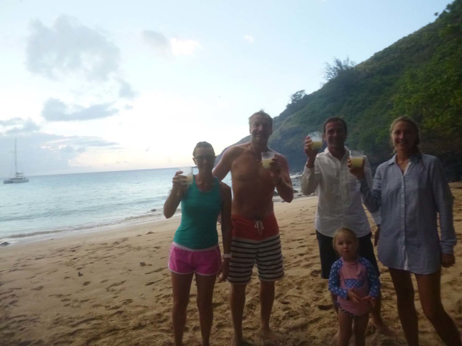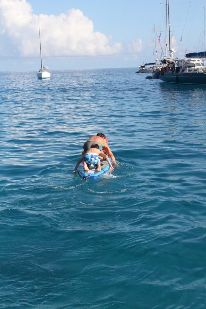 Nous retrouvons nos amis de Luna Bay II, Un Outremer 45 avec 3 enfants à bord : Théotime, Charline et Léonie ont à peu de chose près le même âge que Victor, Arthur et Anna. Nous les avons croisés plusieurs fois, et avons enfin le temps de bien sympathiser autour d’un apéro : les parents dans le cockpit autour d’un ti-punch, et les enfants sur le trampoline à faire les fous!