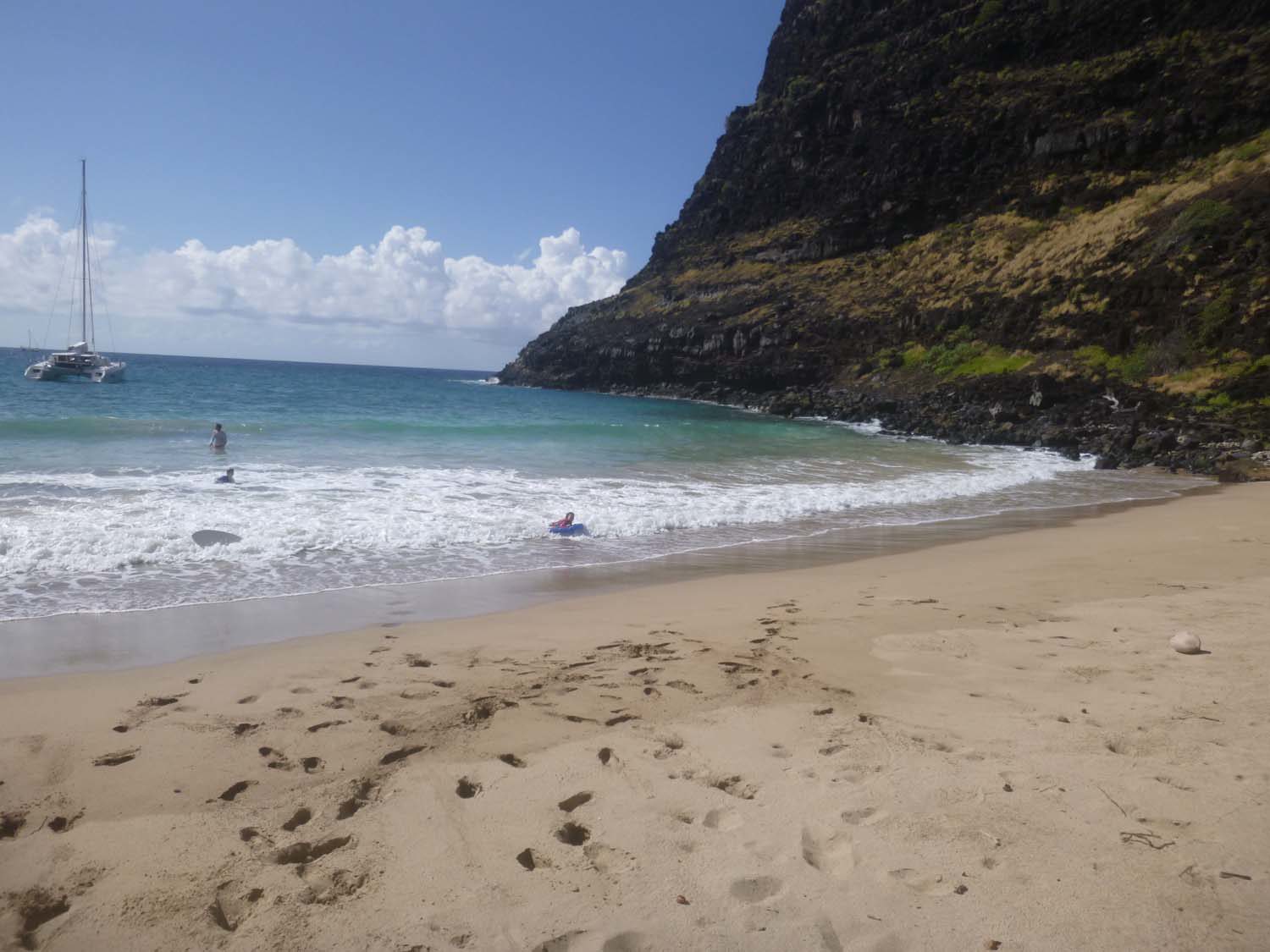 Les mouillages du Nord d’hava Oa sont aussi superbes, comme Hanamenu , et à Tanaeka où les enfants se régalent dans les vagues.