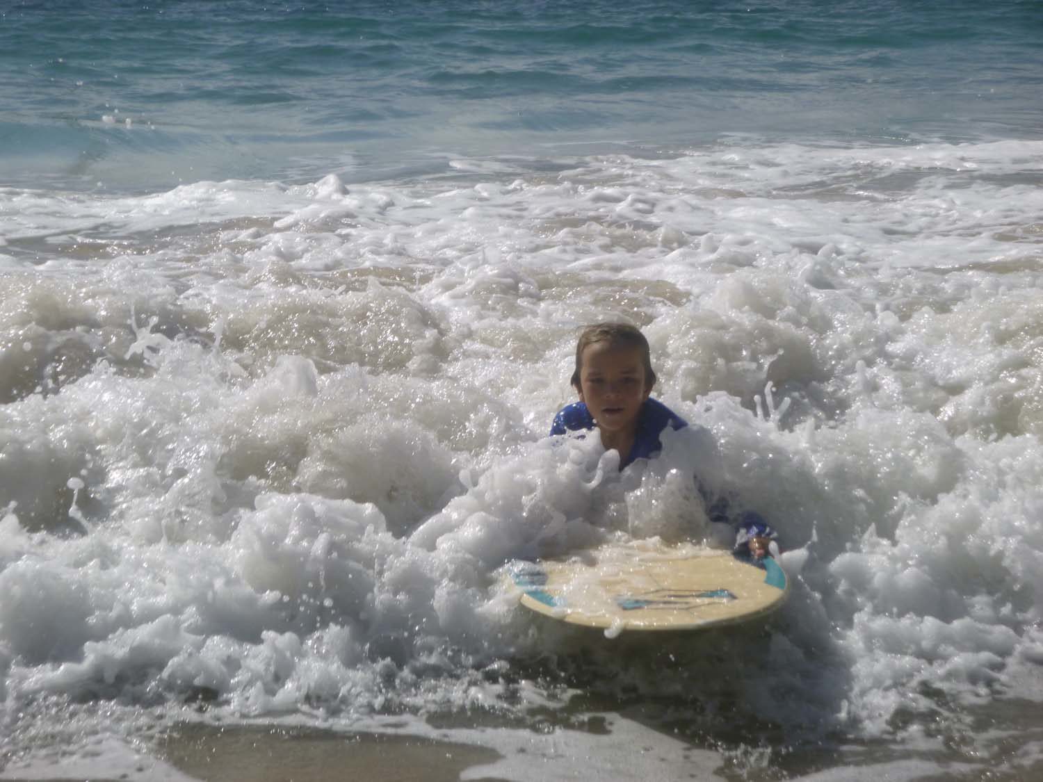 Là encore, sable blanc fin comme de la farine, des kilomètres de plage où nous prenons l’habitude de nous balader en fin de journée, du skim pour les garçons,