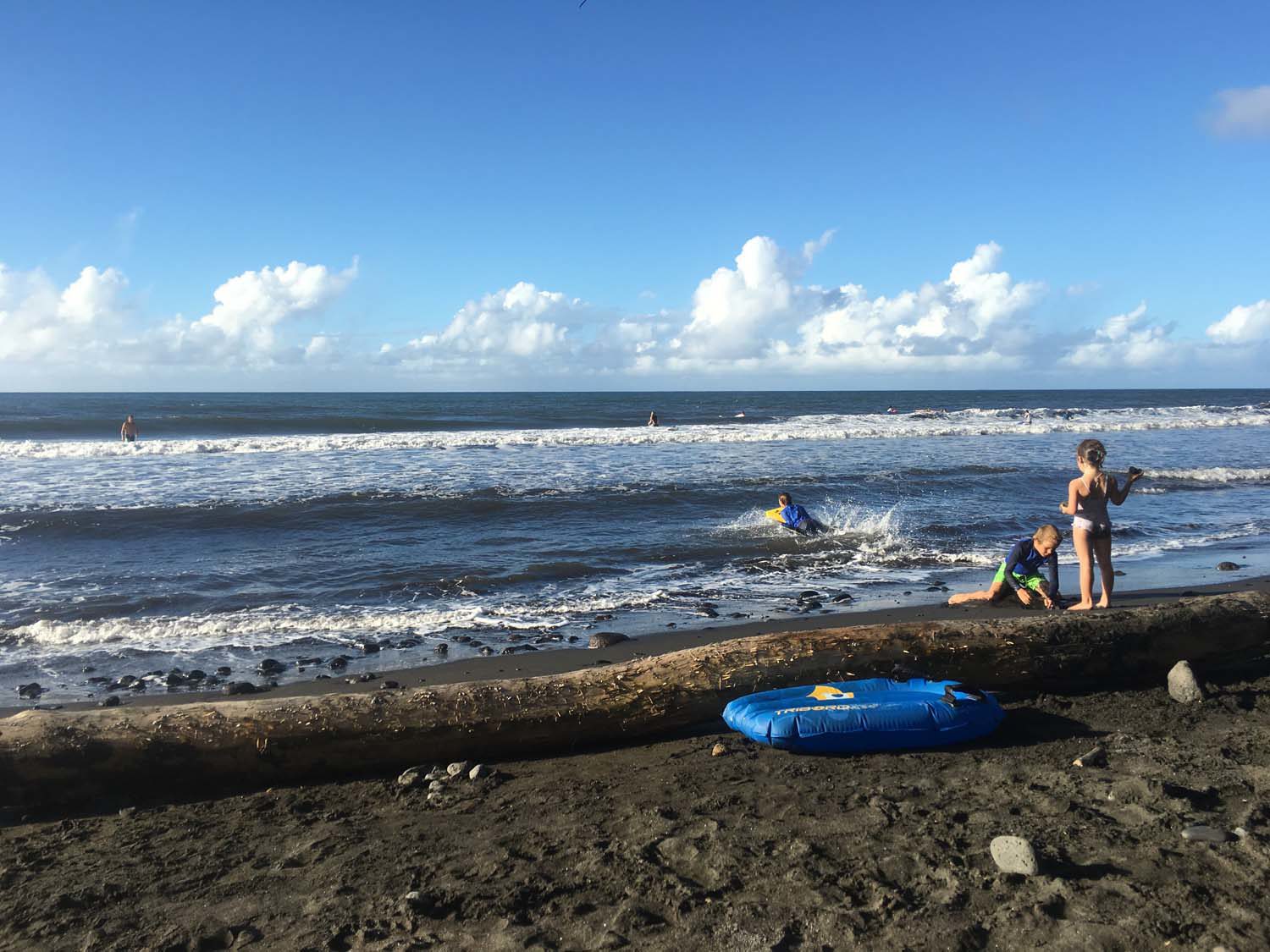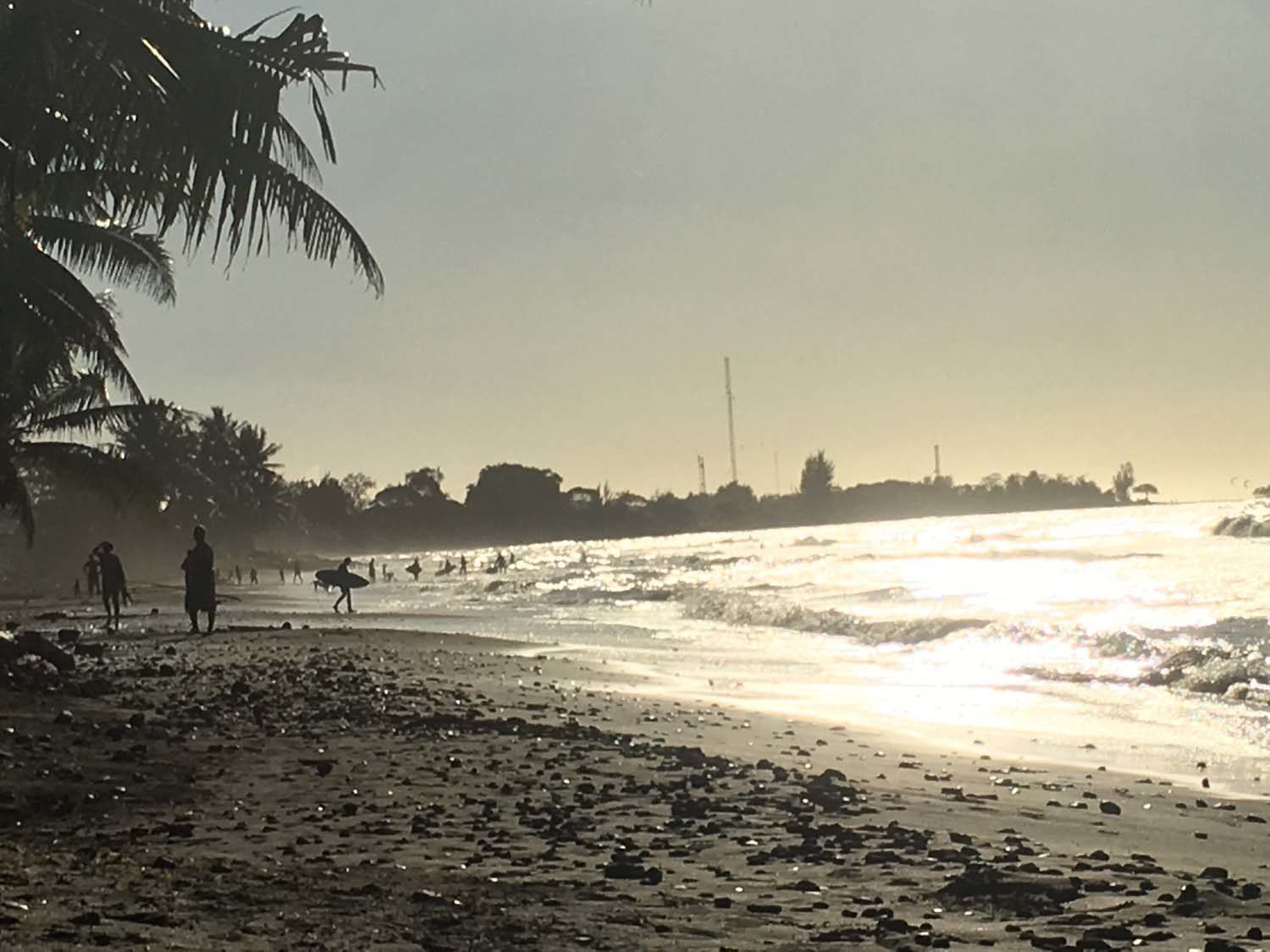Nous avons toute une liste de choses à faire pendant la semaine : il faut dire que le dernier endroit civilisé fréquenté était ….Panama, il y a déjà près 3 mois. Donc les listes de shopping/réparations sont longues. Pour occuper les enfants, nous avons inscrit Victor et Arthur à un stage de surf tous les matins : nous sommes assurés qu’ils vont prendre l’air et ne pas s’ennuyer!