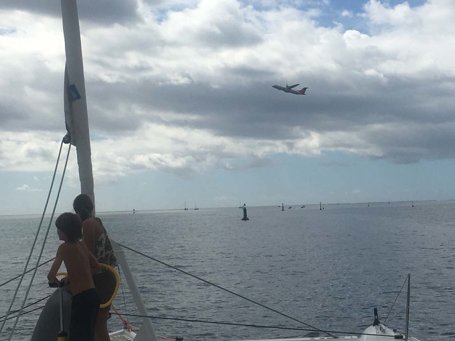 Je me réjouis d’avance de ces retrouvailles et aussi du confort de la vie à l’hôtel : pas de repas à préparer, pas d’école à faire pour la maitresse, ni de nav’ de nuit à assurer, mais de l’eau qui coule sans (trop) compter, des nuits complètes sans se réveiller pour cause de vent, de pluie, ou mer agitée etc… , du temps pour bouquiner, pour ne rien faire aussi et des petits dèj pantagruéliques….