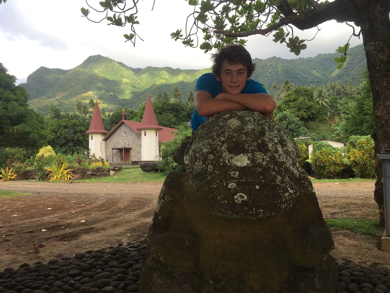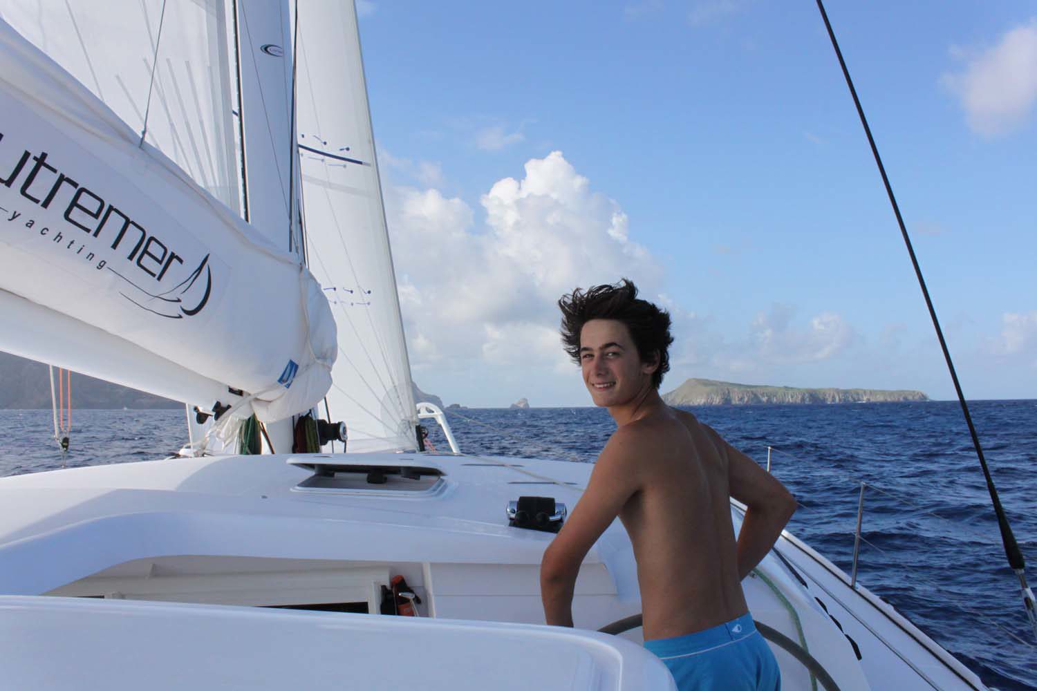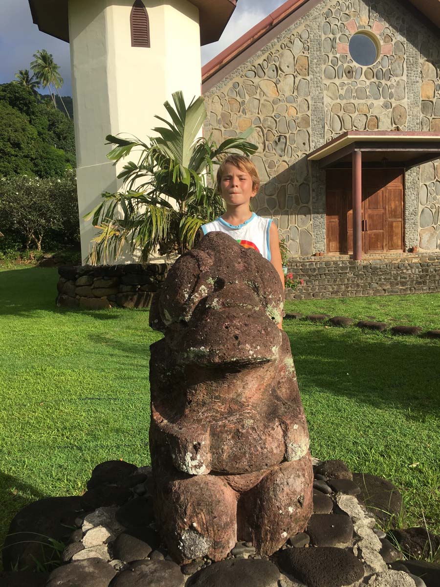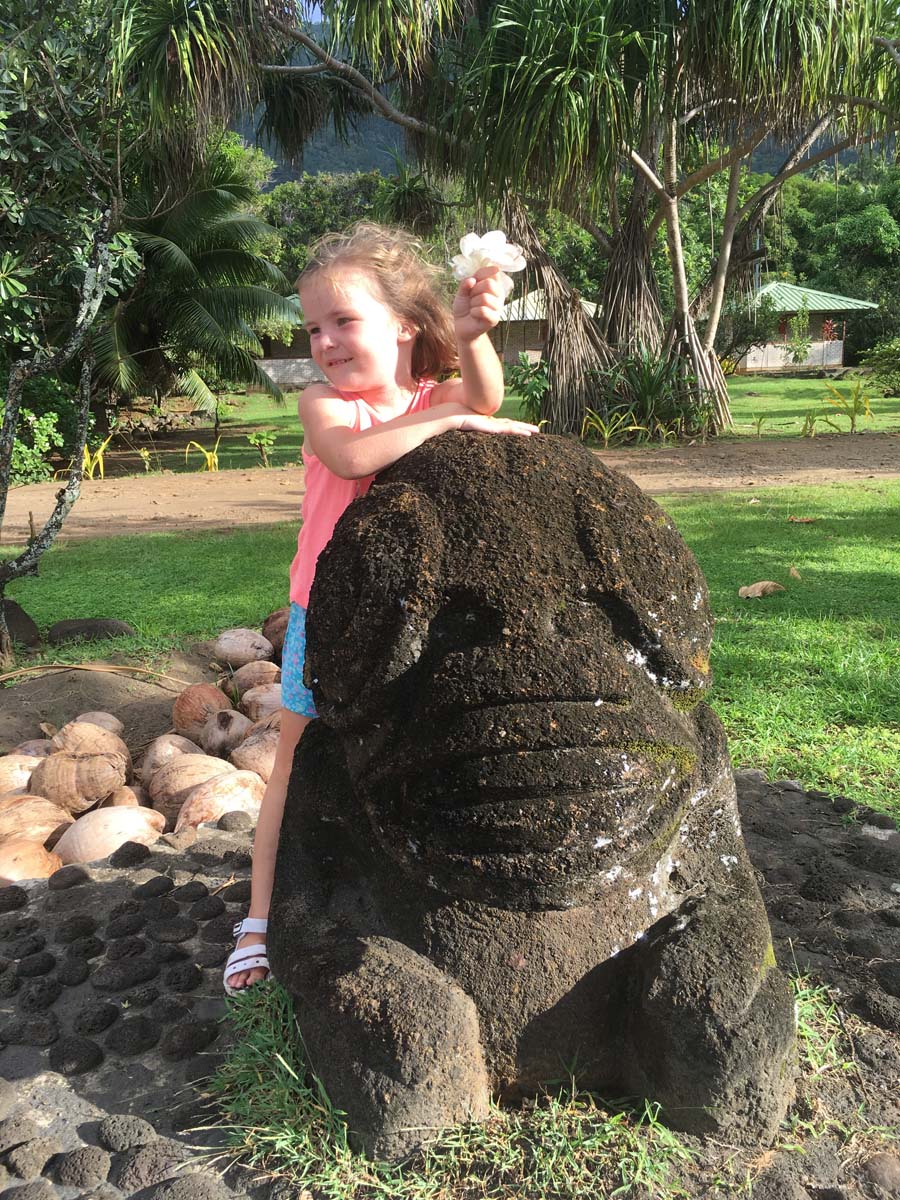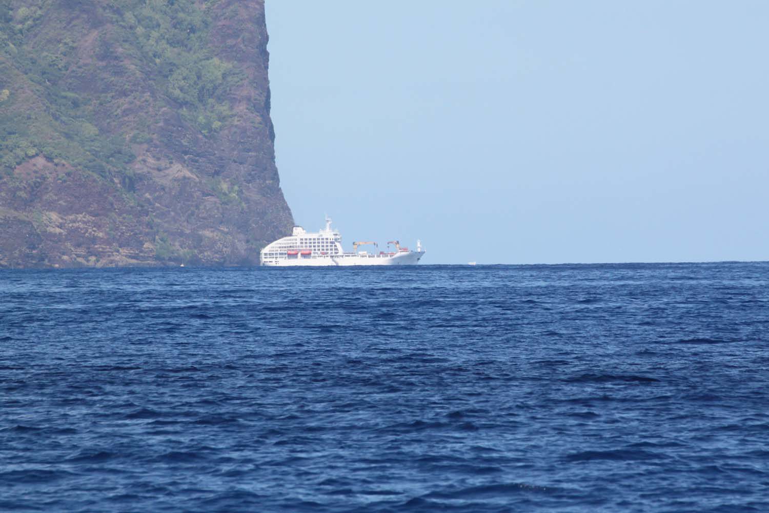 Motu One nous intrigue : un ilot de sable comme un atoll, alors que iles Marquises sont toutes des îles volcaniques sans barrière de corail. Après 2 semaines aux Marquises, sous le charme du paysage et de ses habitants, mais un peu fatigués des eaux verdâtres de ses baies, nous aspirons à un peu d’eau turquoise….