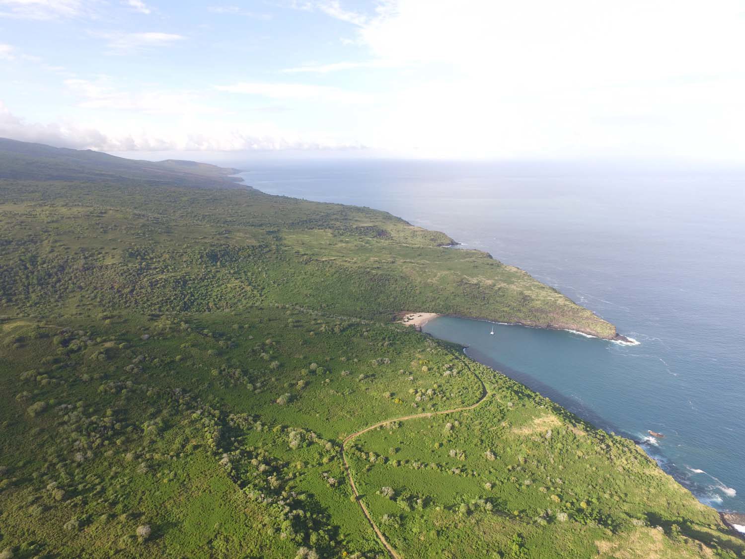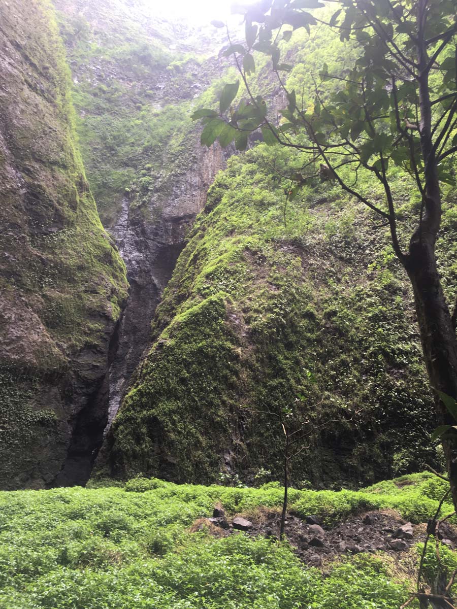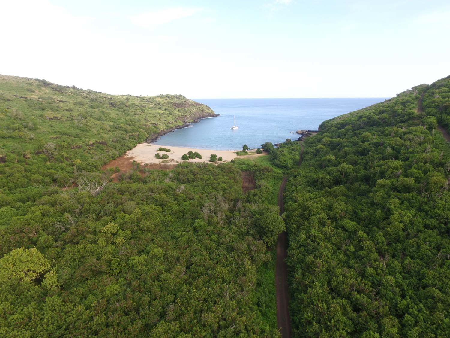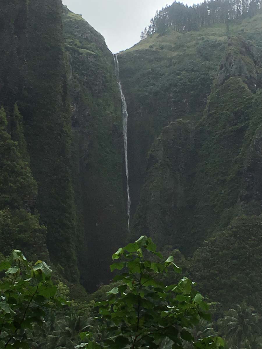 Motu One nous intrigue : un ilot de sable comme un atoll, alors que iles Marquises sont toutes des îles volcaniques sans barrière de corail. Après 2 semaines aux Marquises, sous le charme du paysage et de ses habitants, mais un peu fatigués des eaux verdâtres de ses baies, nous aspirons à un peu d’eau turquoise….