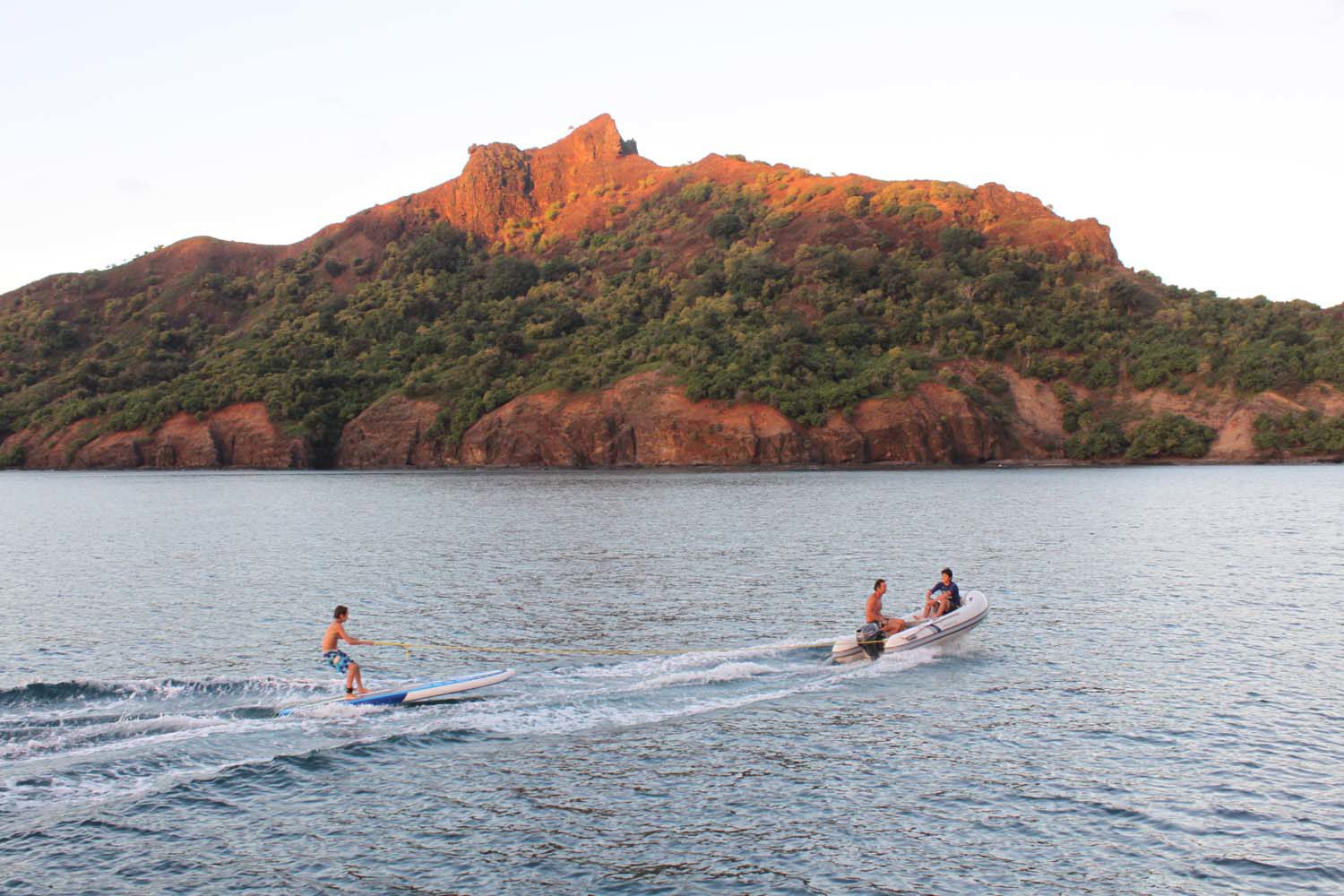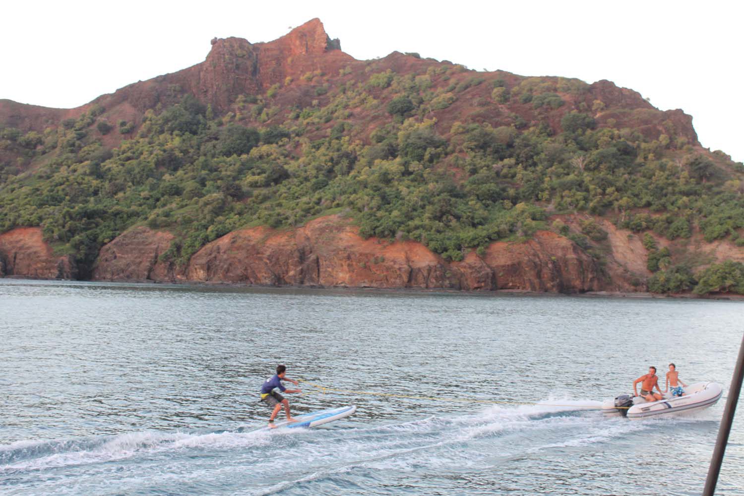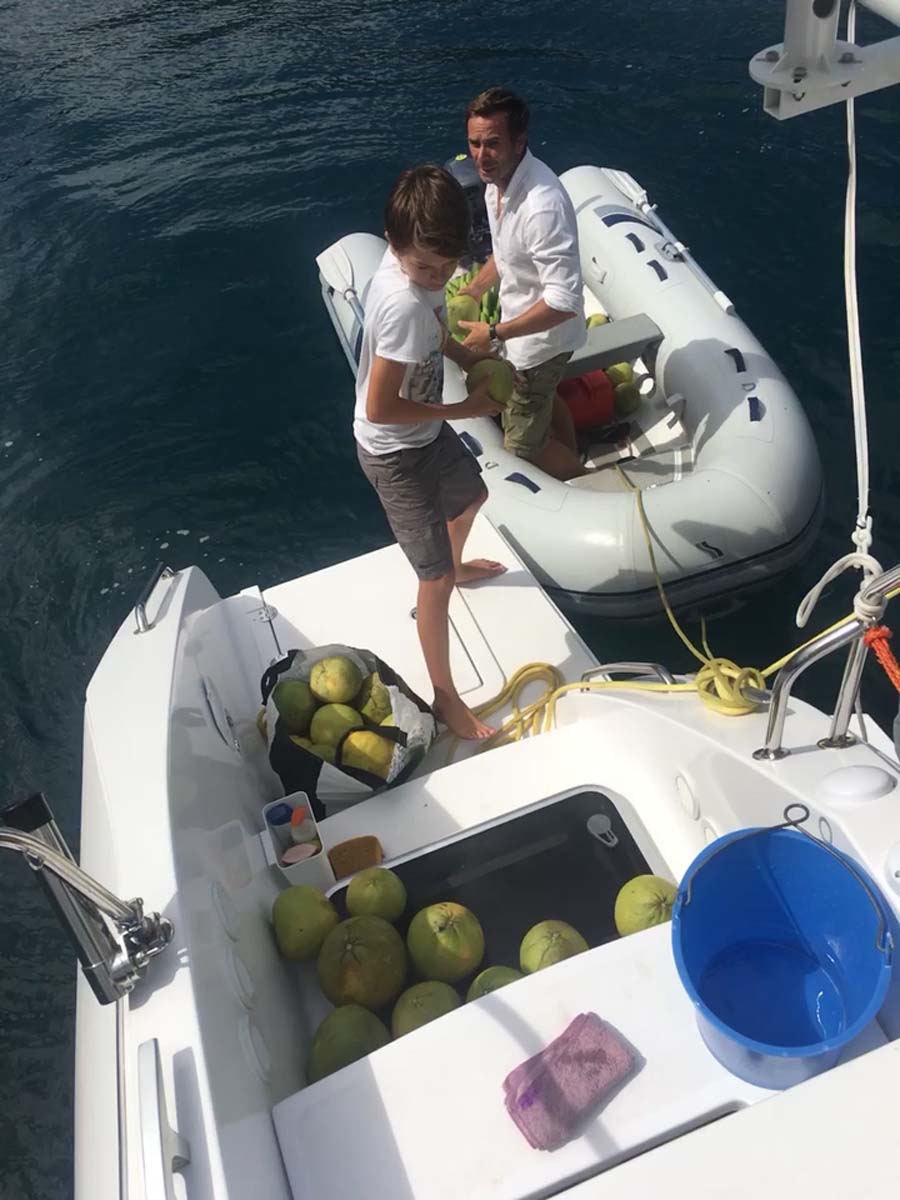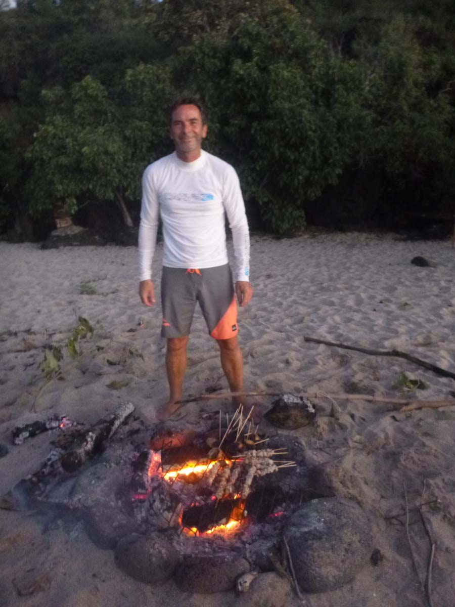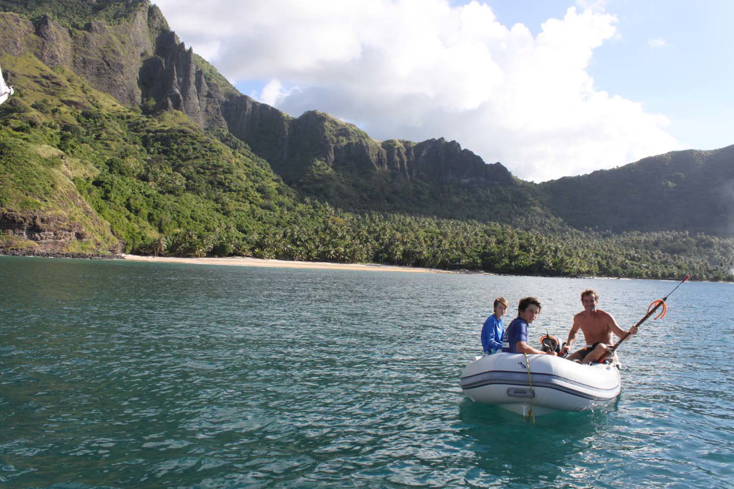 La plage est belle, mais gavée de nonos, alors nous nous baignons du bateau : les poissons sont innombrables, les garçons s’adonnent à la pêche, au lancer du bateau, et aussi au fusil.