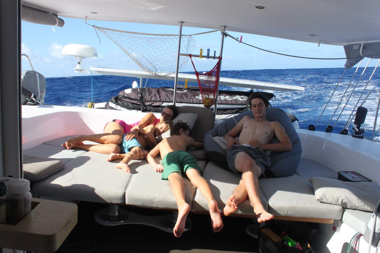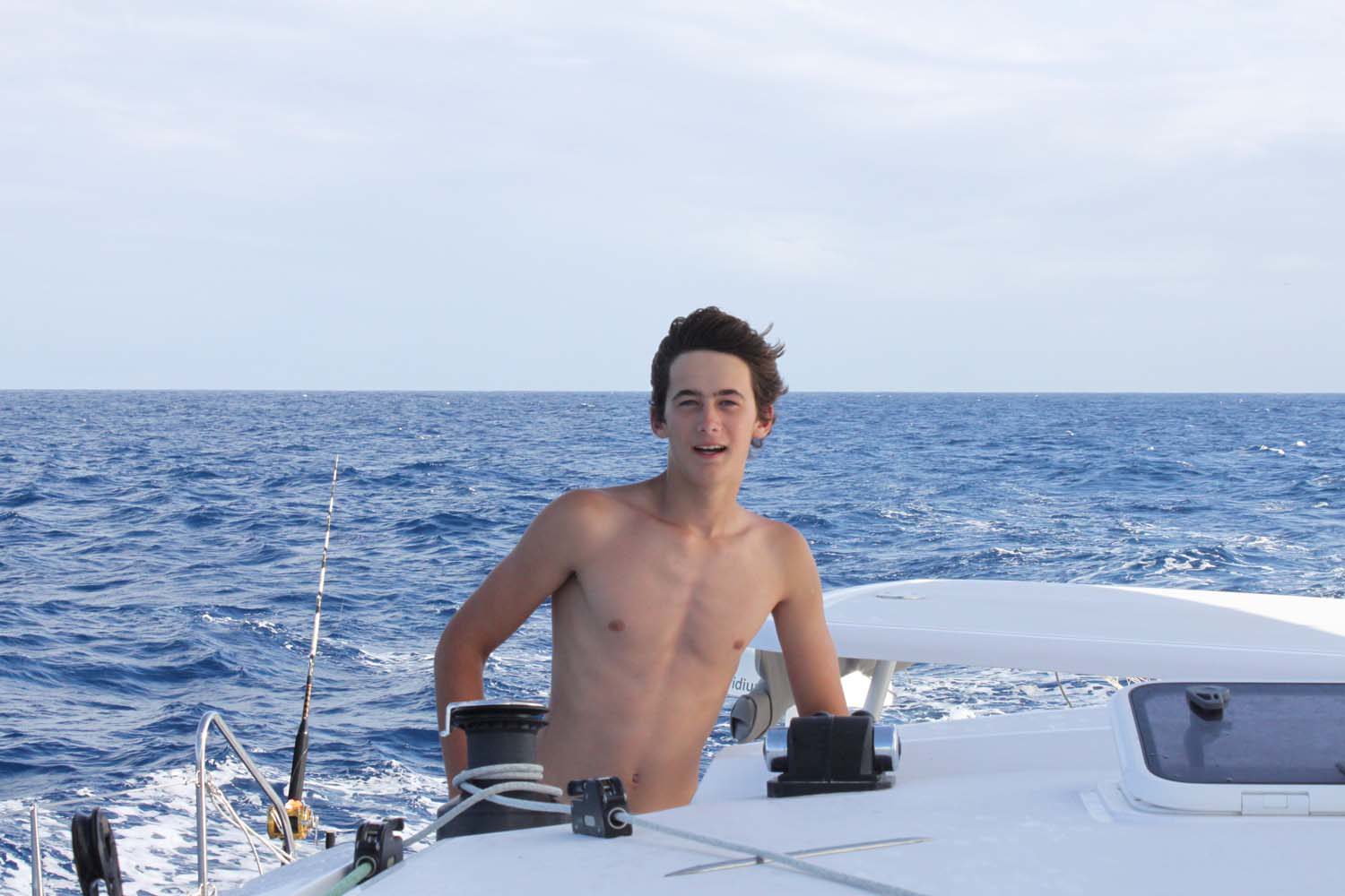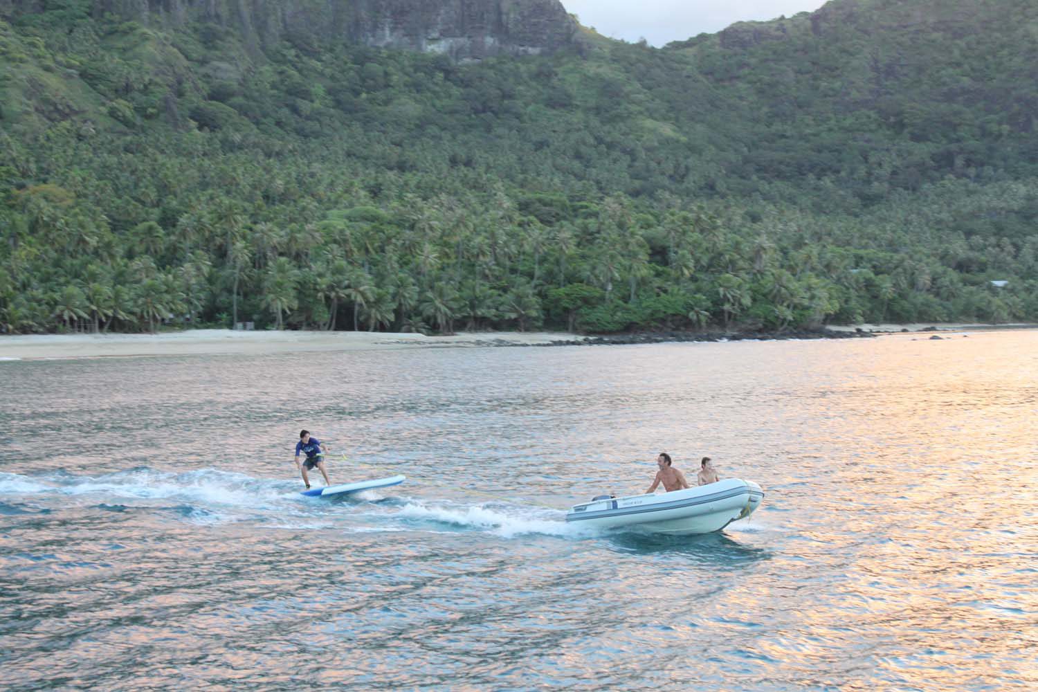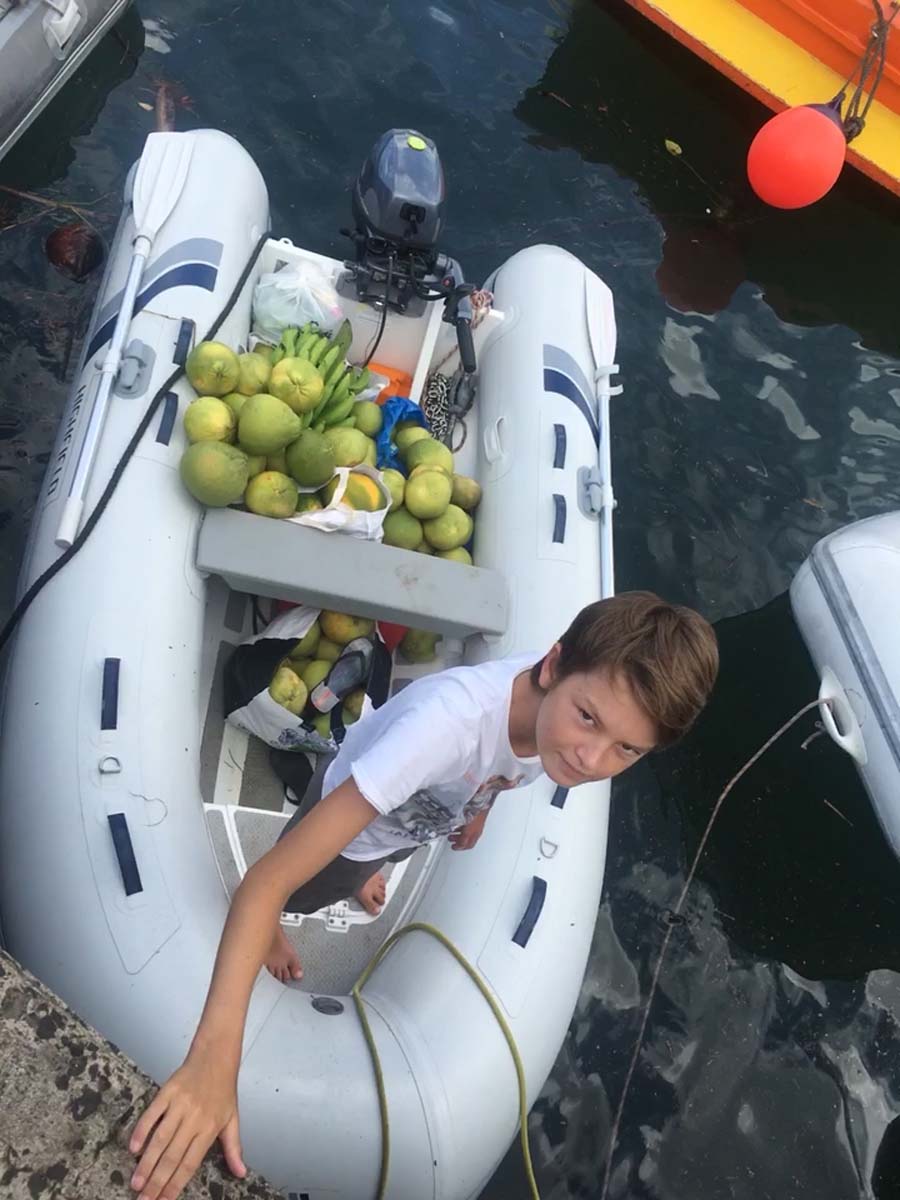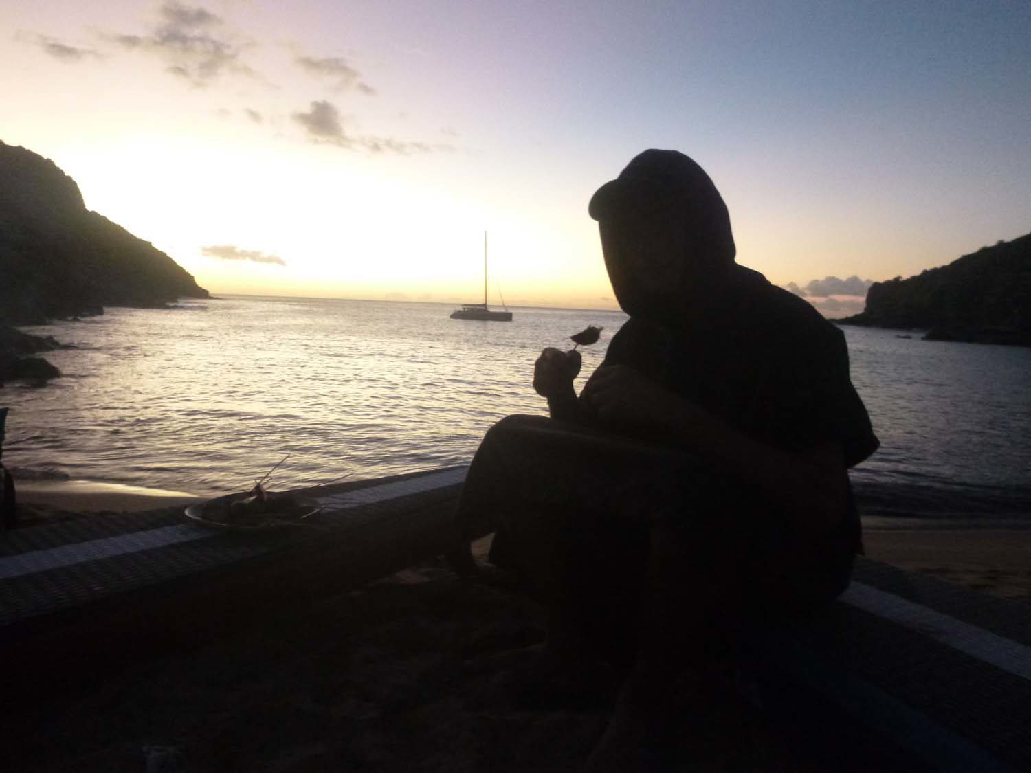 La plage est belle, mais gavée de nonos, alors nous nous baignons du bateau : les poissons sont innombrables, les garçons s’adonnent à la pêche, au lancer du bateau, et aussi au fusil.