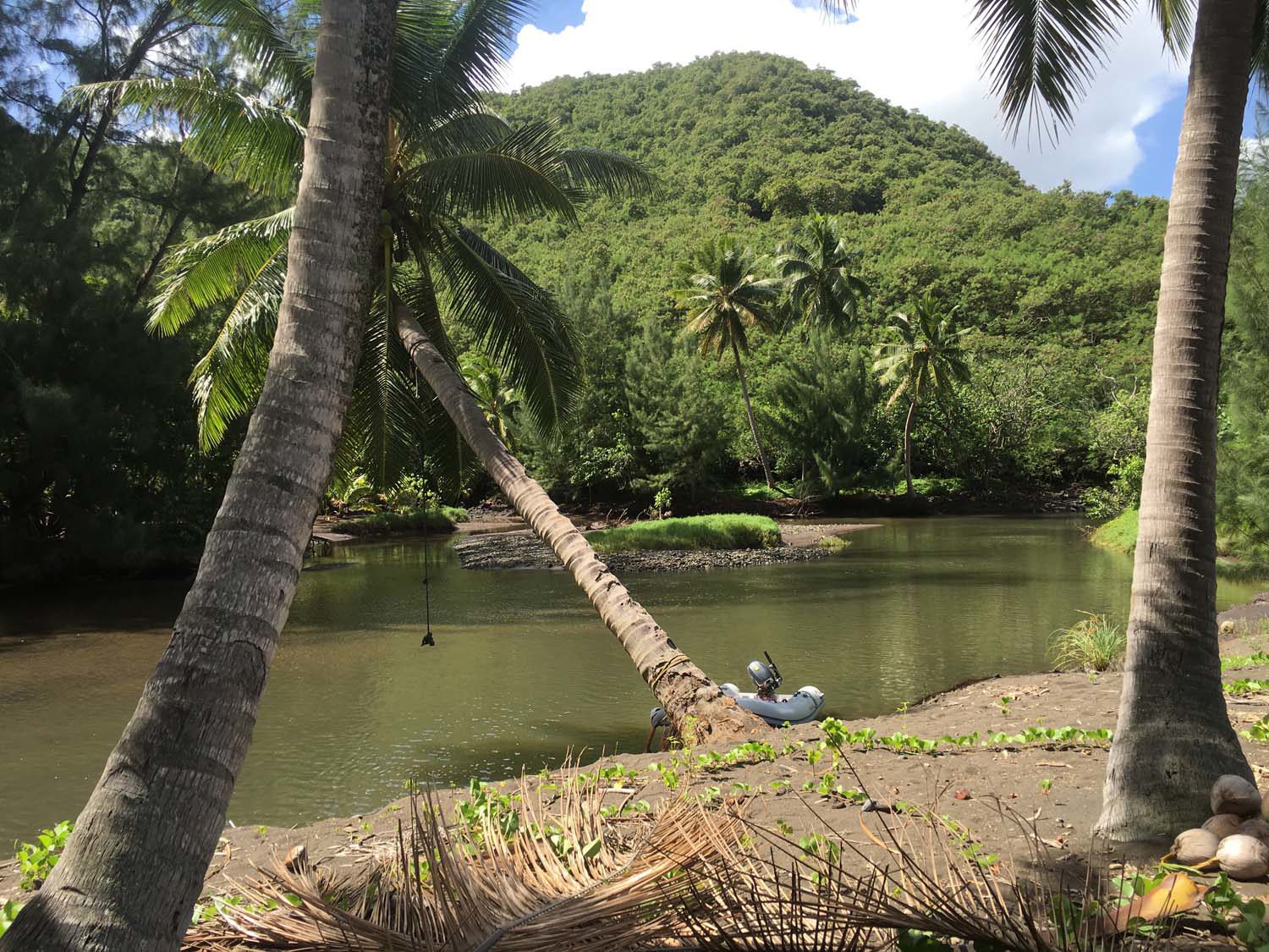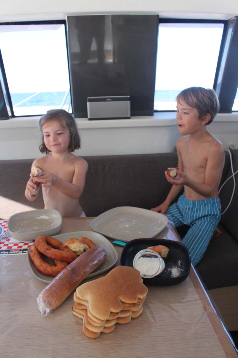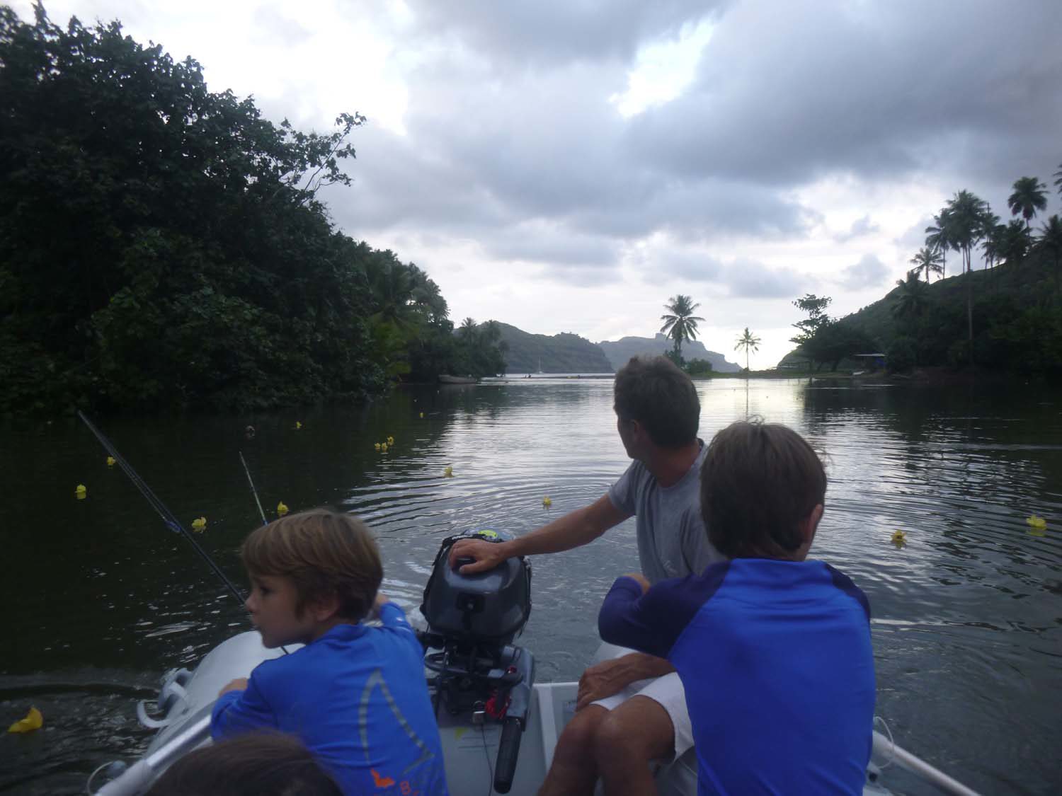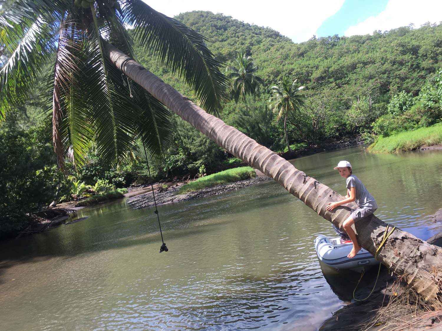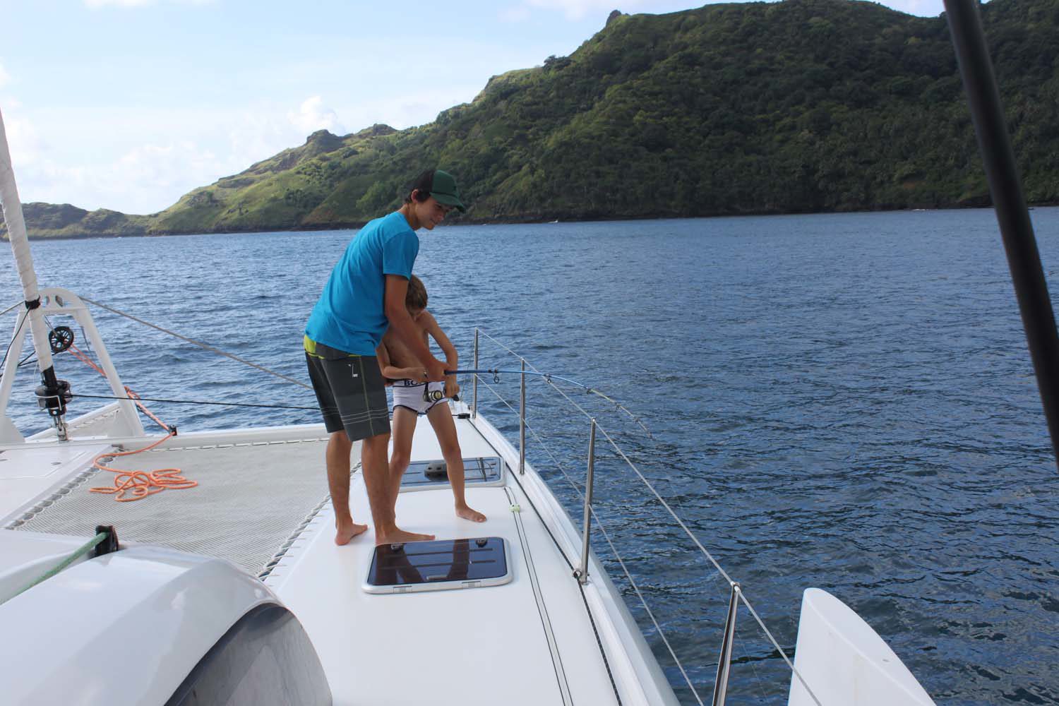 La plage est belle, mais gavée de nonos, alors nous nous baignons du bateau : les poissons sont innombrables, les garçons s’adonnent à la pêche, au lancer du bateau, et aussi au fusil.
