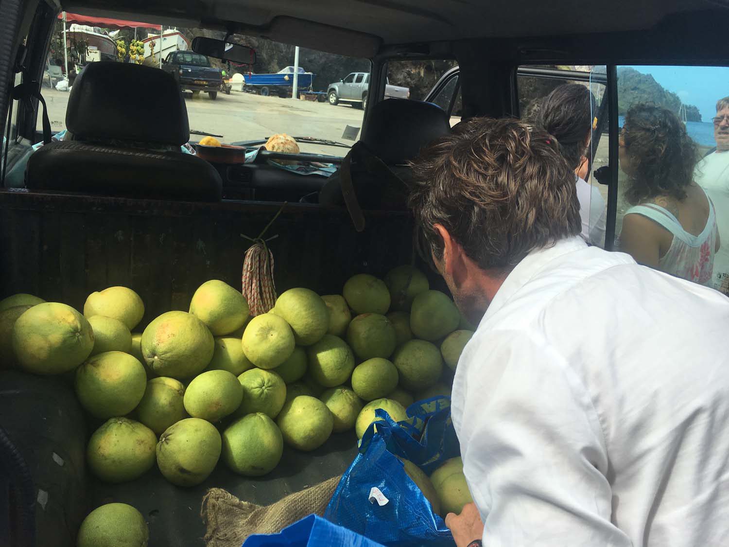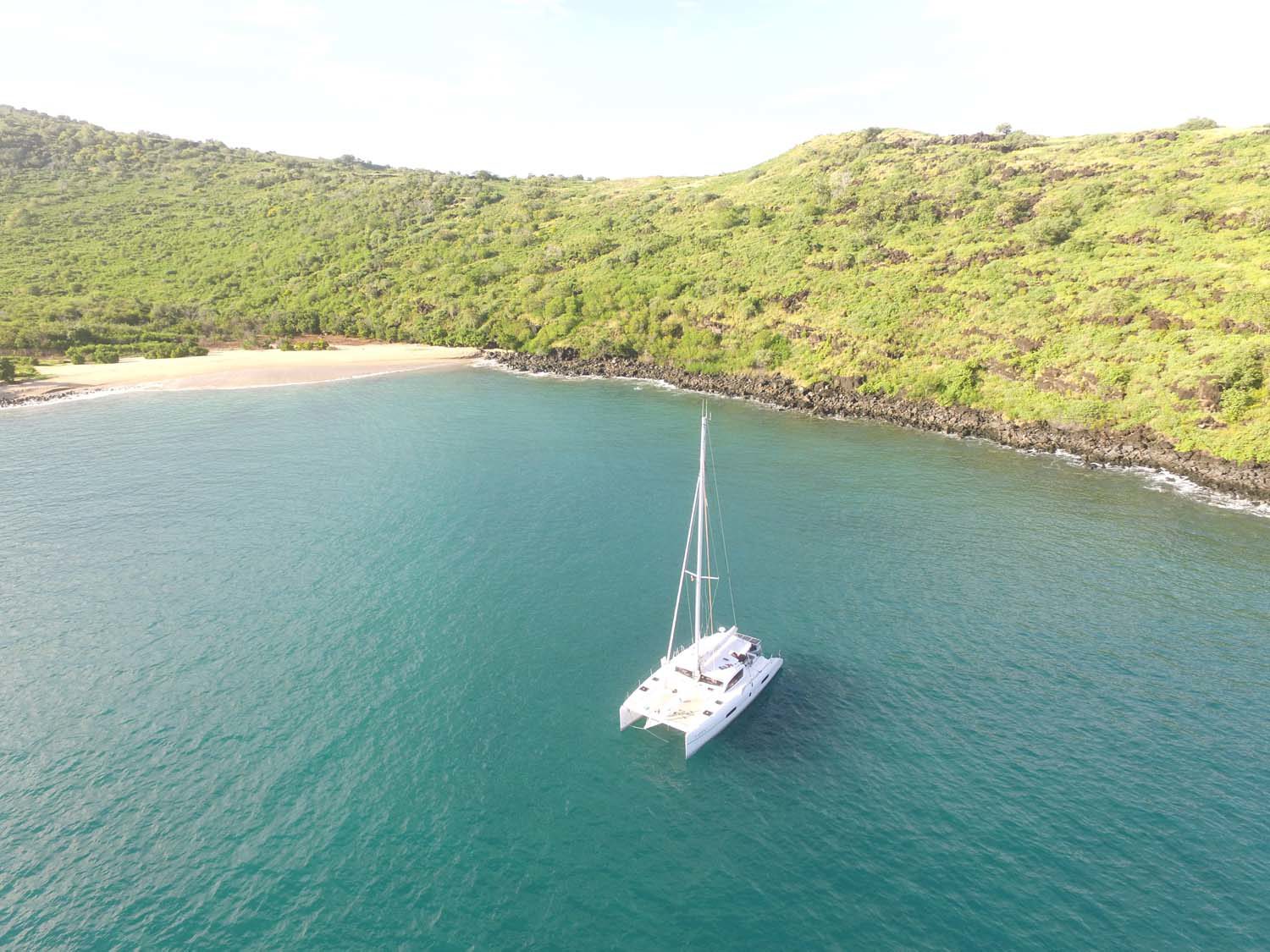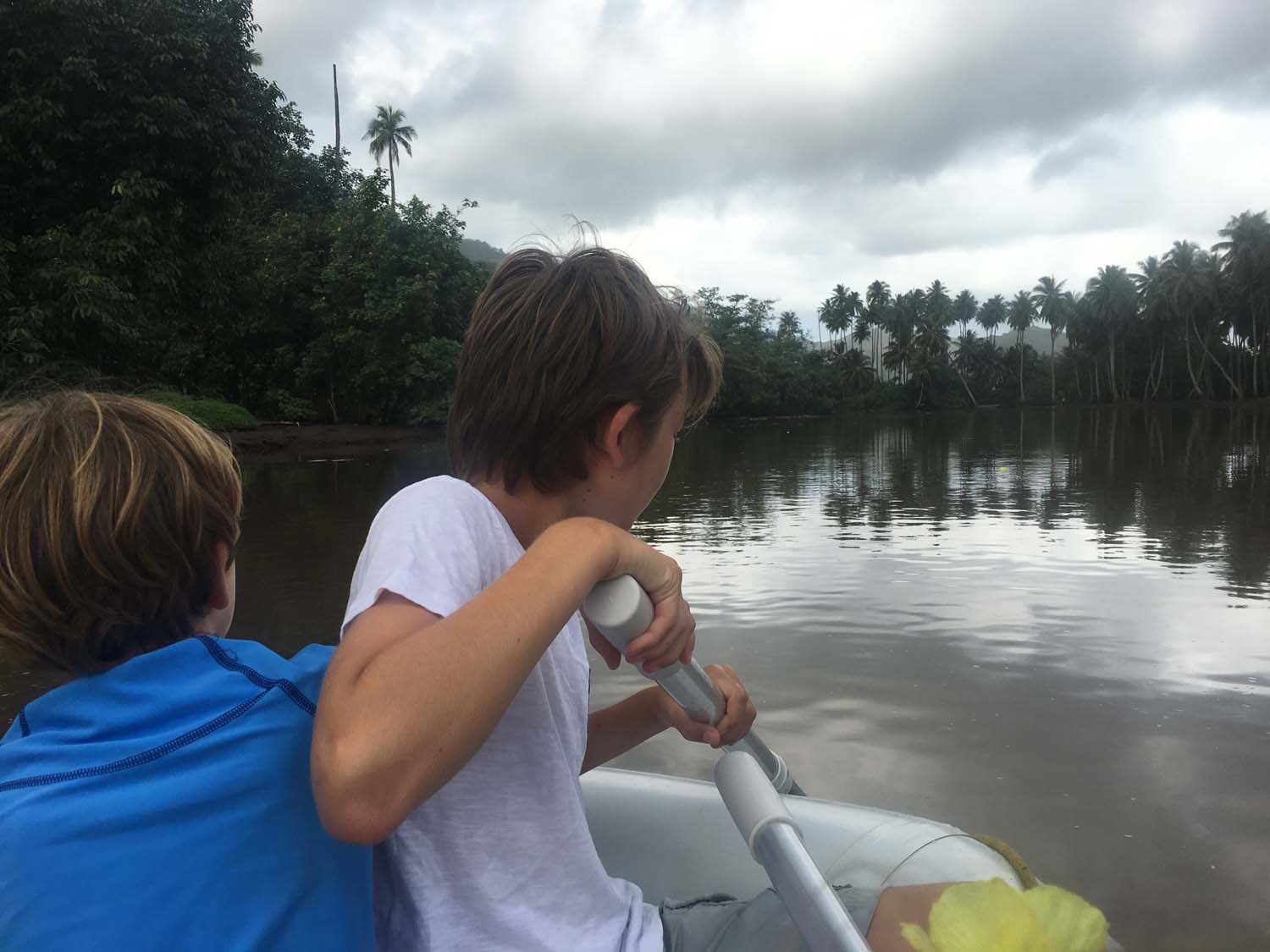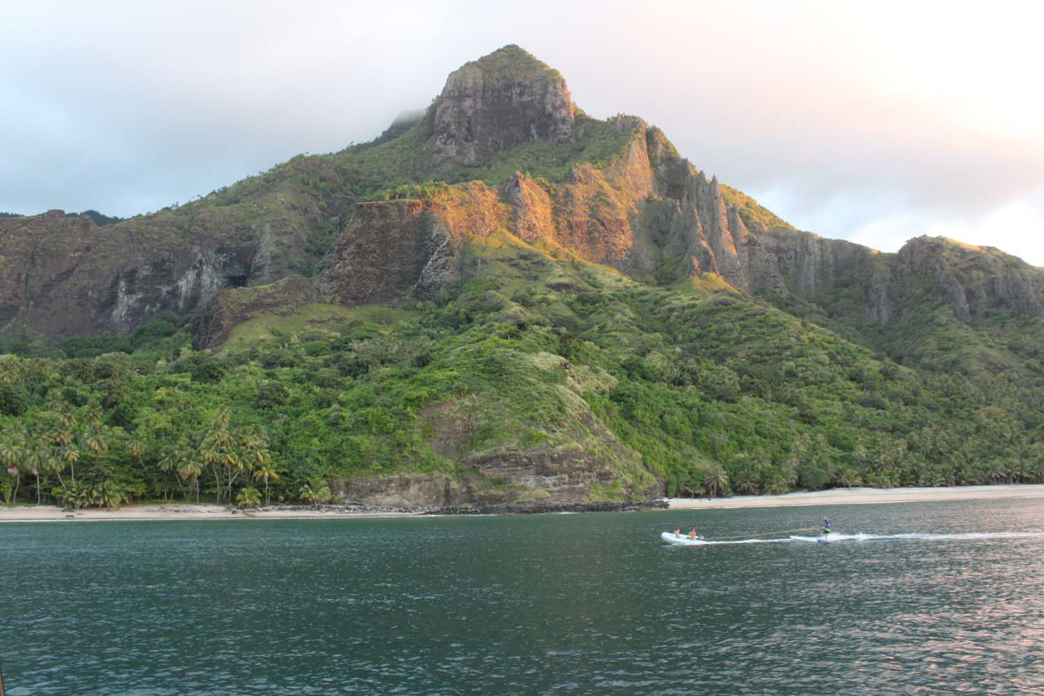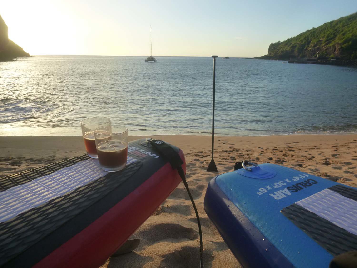 La plage est belle, mais gavée de nonos, alors nous nous baignons du bateau : les poissons sont innombrables, les garçons s’adonnent à la pêche, au lancer du bateau, et aussi au fusil.