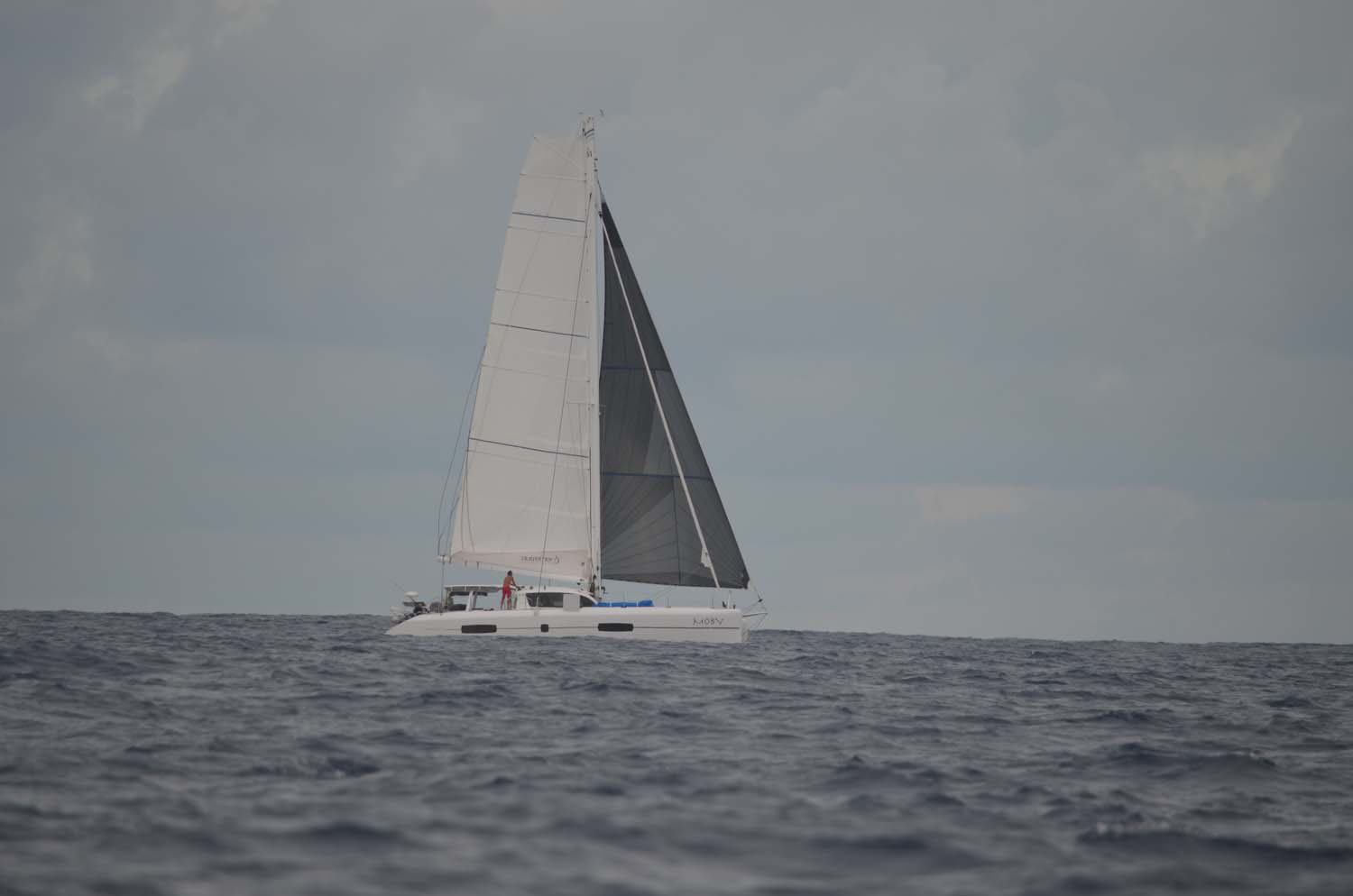Des formes sombres apparaissent dans les vagues : des requins viennent s’oxygéner. Au vu de la houle, il est évident que vous ne pourrons ni mouiller ni débarquer, dommage, mais nous sommes heureux d’avoir fait la route pour observer cet atoll.