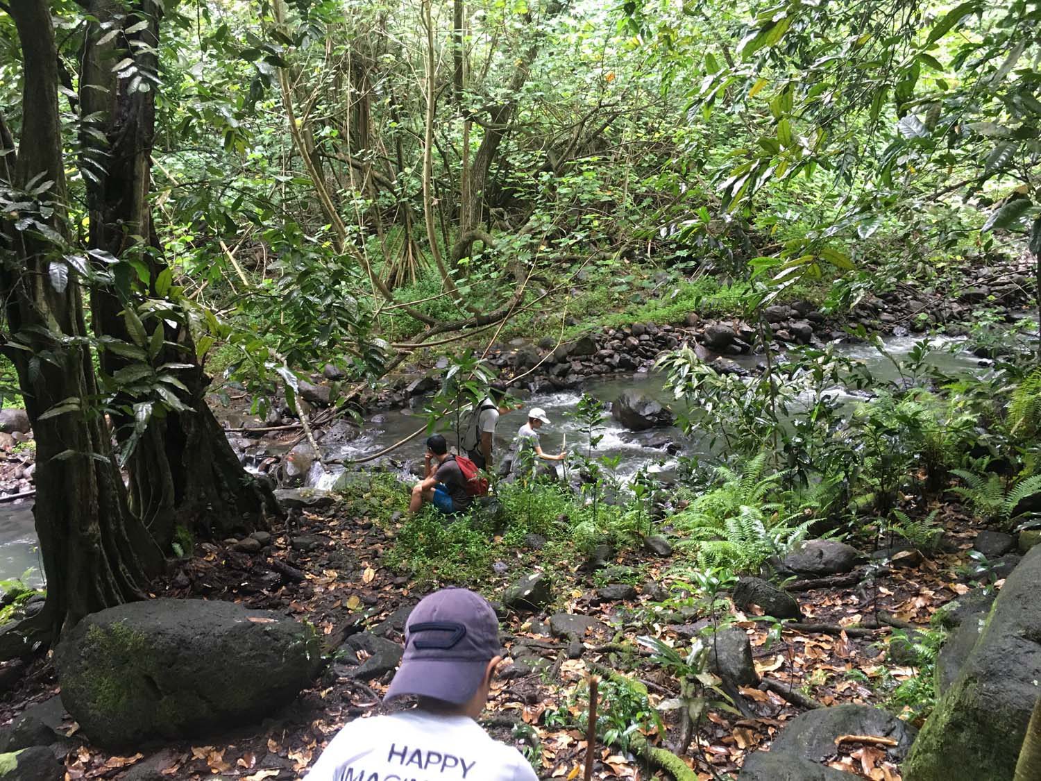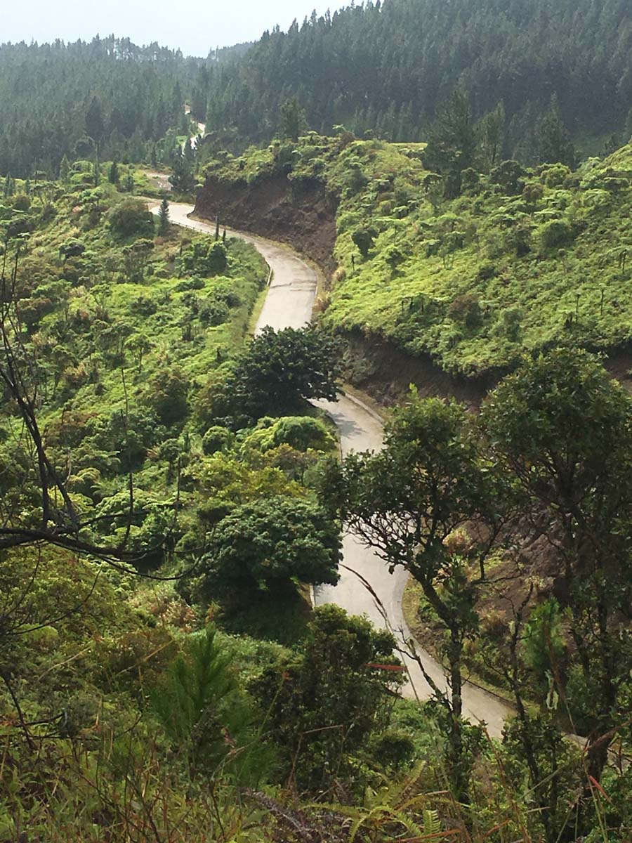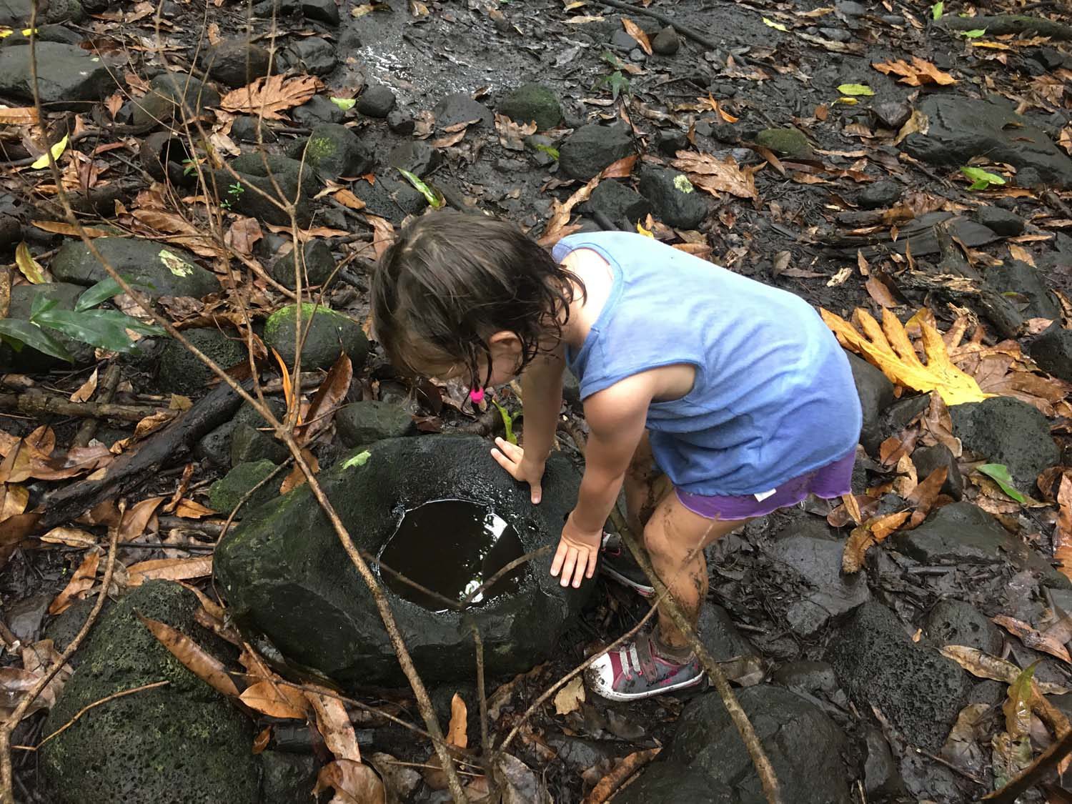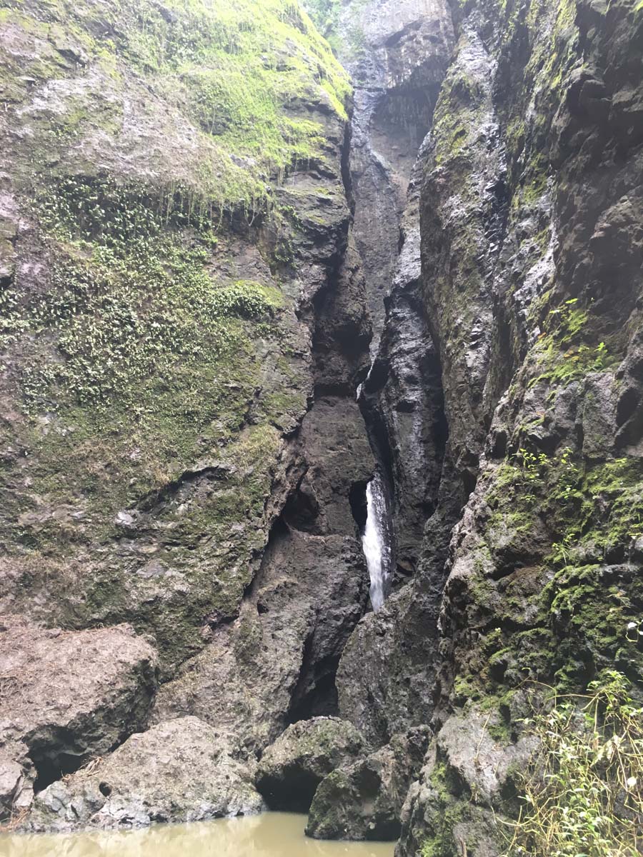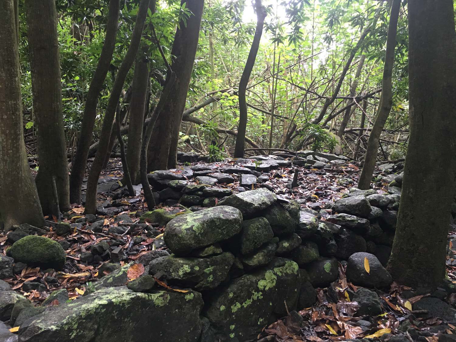 Arrivés à EIAO, nous découvrons une baie très sauvage, plage de sable noire, et des eaux aux couleurs contrastées : noire, vertes et rouge, du fait d’une source d’eau ferrugineuse.