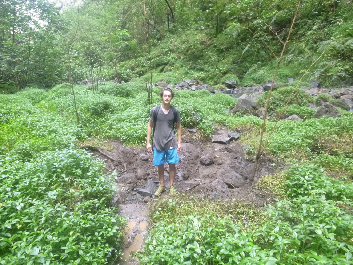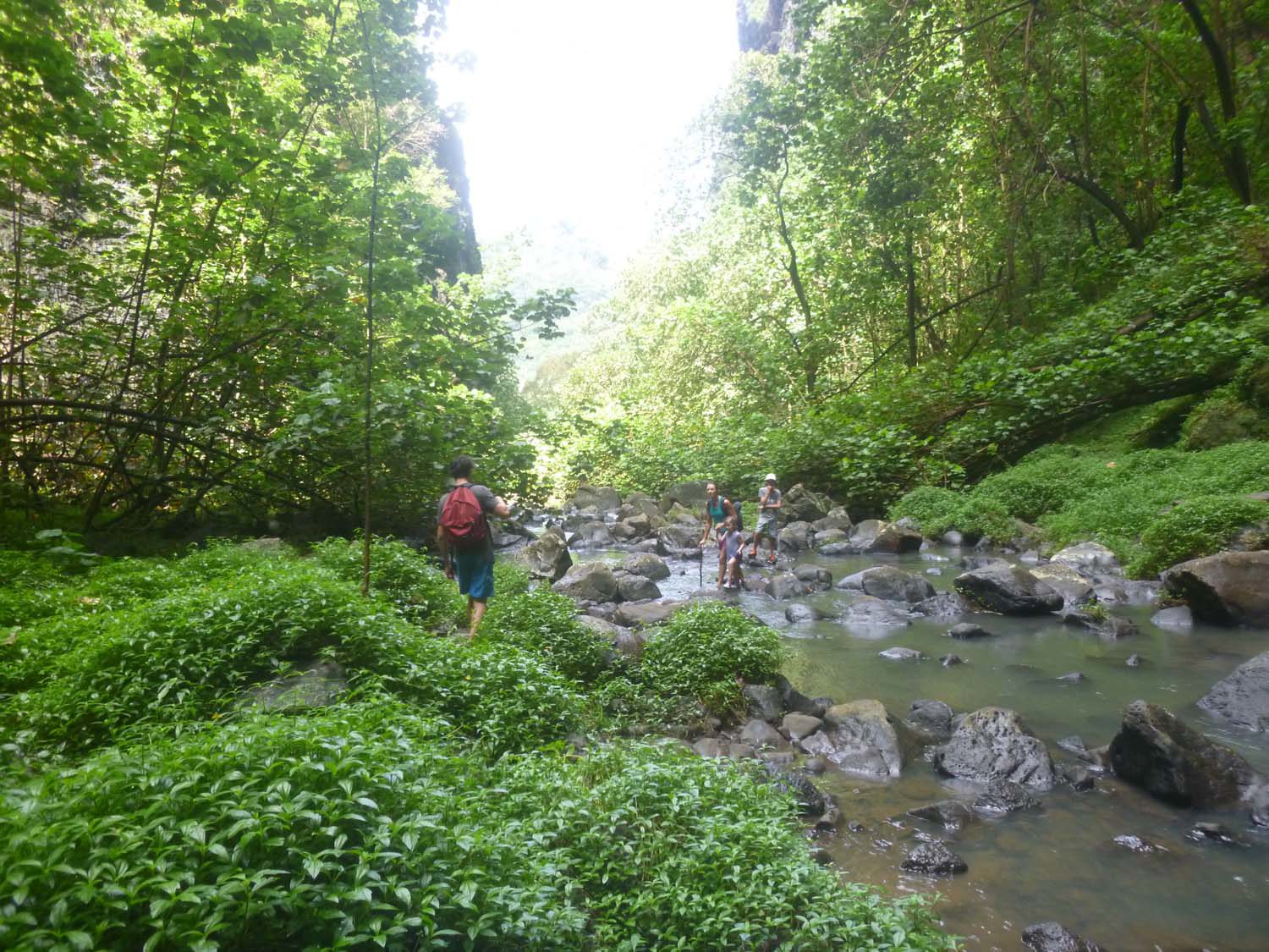 Le lendemain nous débarquons, la cabane est occupée par 3 jeunes venus camper sur l‘île, nous partons à la découverte de la source, l’eau est bonne, et la plage de sable presque rouge.