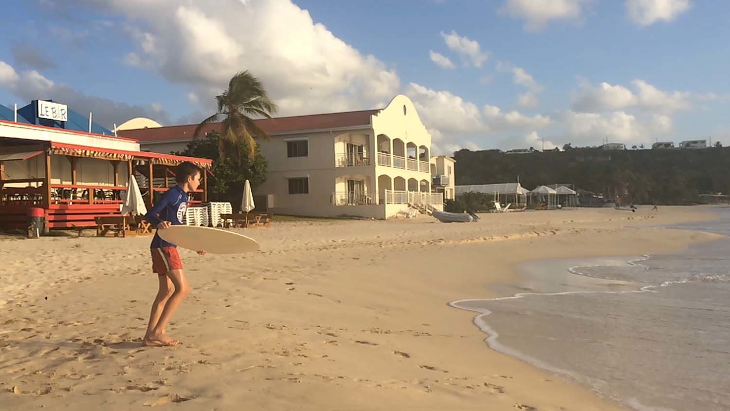 De retour à St-Martin, la plage de Grand Case est très bien elle aussi pour le skim, et Victor commence les backflip en sortie de vague : je vous promet des photos bientôt, mais en attendant,voici un petit aperçu de ses débuts :