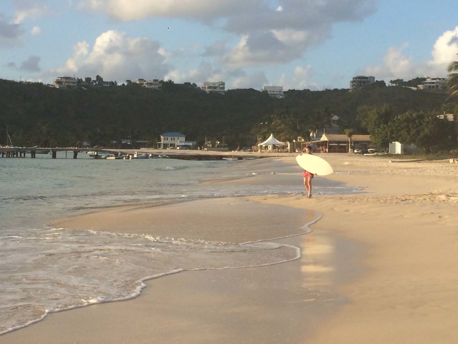 Parmi les planches que nous avons apporté sur Moby figurent 2 skims pour les enfants : une première planche qui date de nos années « Ile Maurice » et que Victor utilisait à Poste Lafayette et une seconde que nous avions pris pour Arthur en Bretagne-pour la Plage des blancs Sablons. A notre arrivée sur les plages d’Anguilla, Victor a tout de suite vu le potentiel du spot :