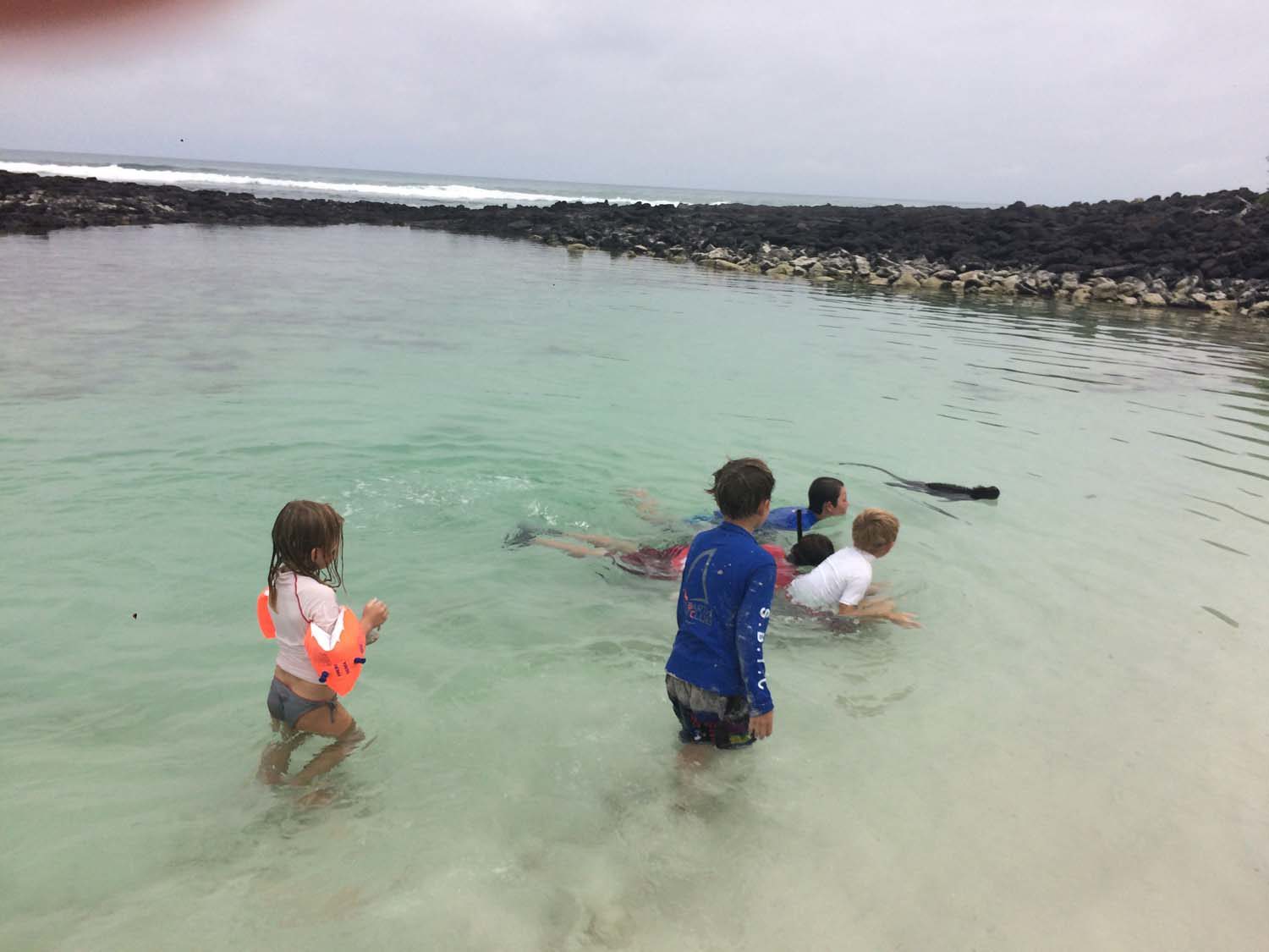Le lendemain c’est repos, les enfants sont épuisés de leur journée de la veille, pas loin de 4h de marche en tout, de longues baignades, des heures de skim pour Victor, et une soirée bien animée avec les copains à bord!