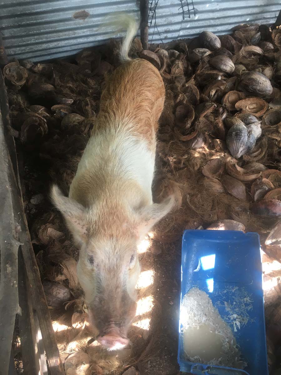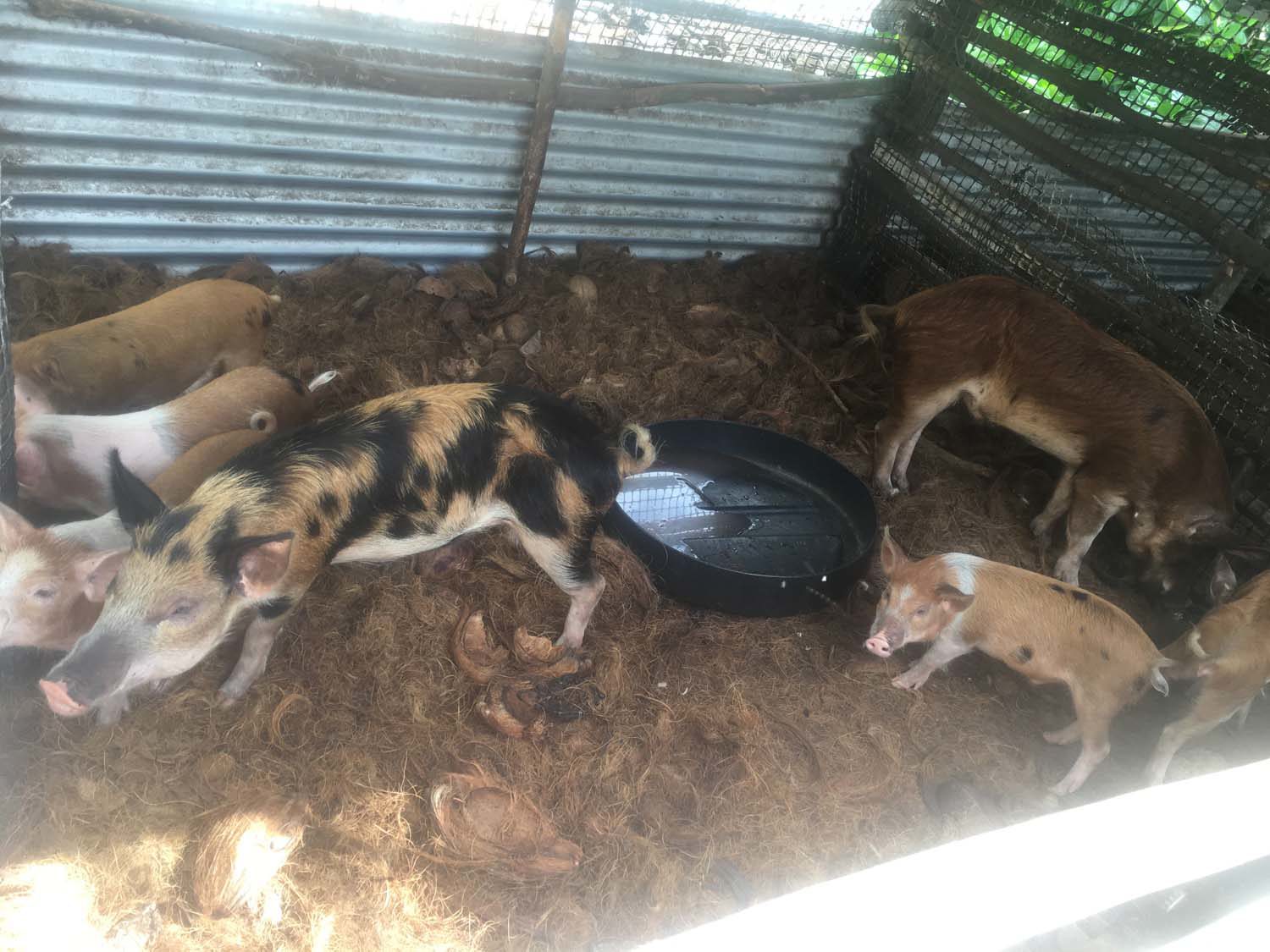 Plus tard, nous allons nous balader à terre et visiter le village abandonné, ancienne capitale de Fakarava. D’adorables cochons trainent par là, nourris au poisson et à la noix de coco.