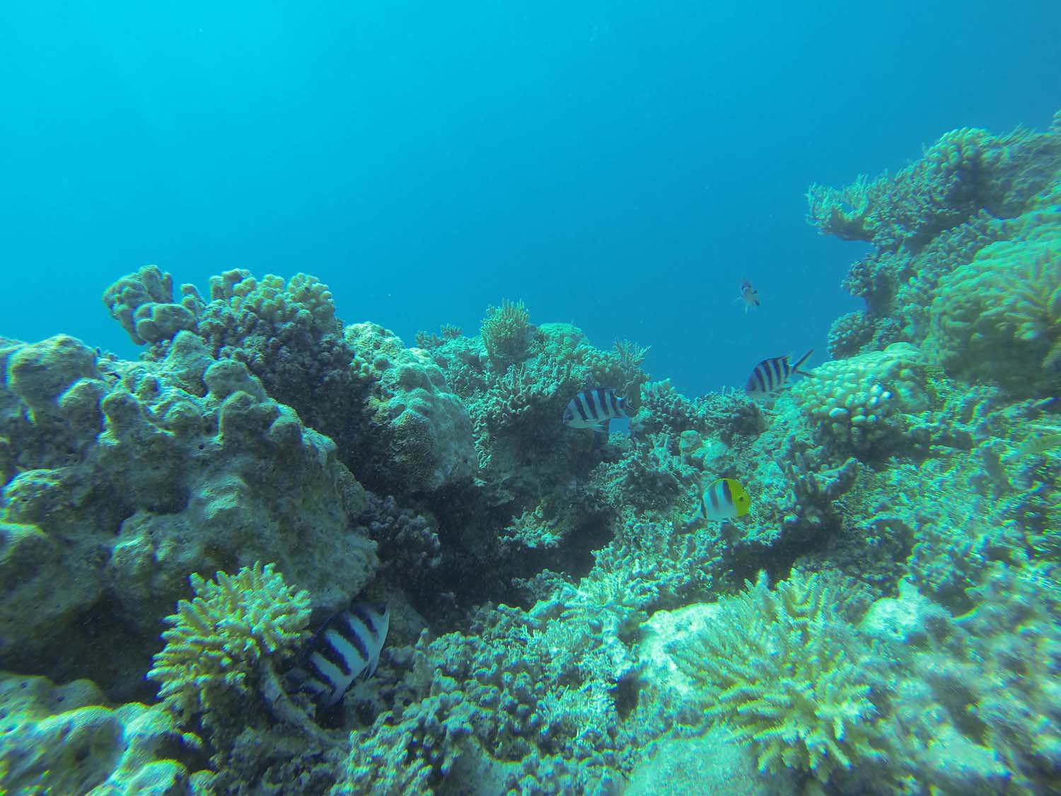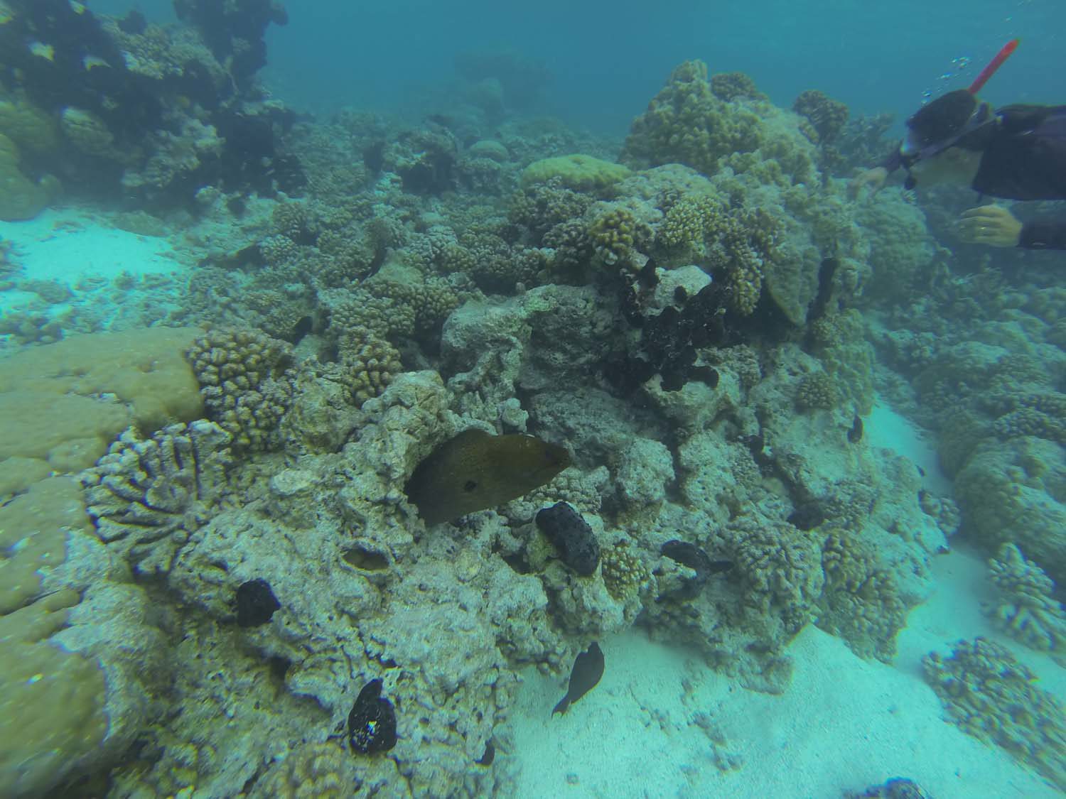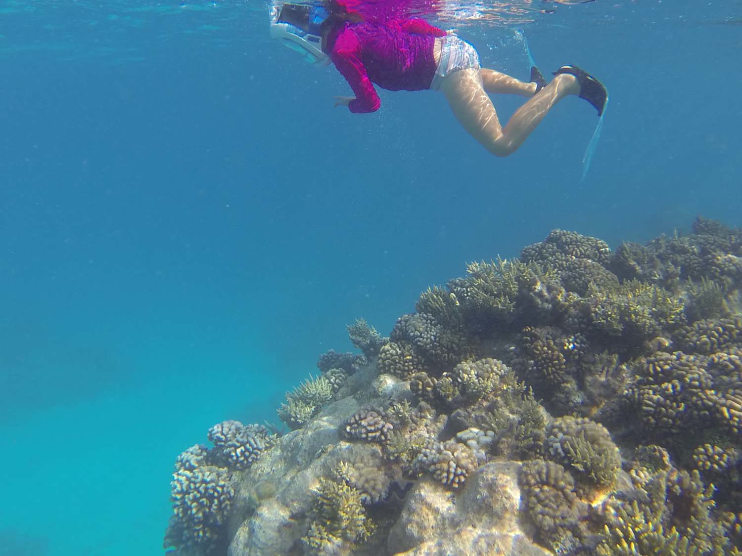 Le snorkeling est encore une fois superbe, nous nageons au bord de la plage, dans moins de 2 à 4m d’eau.