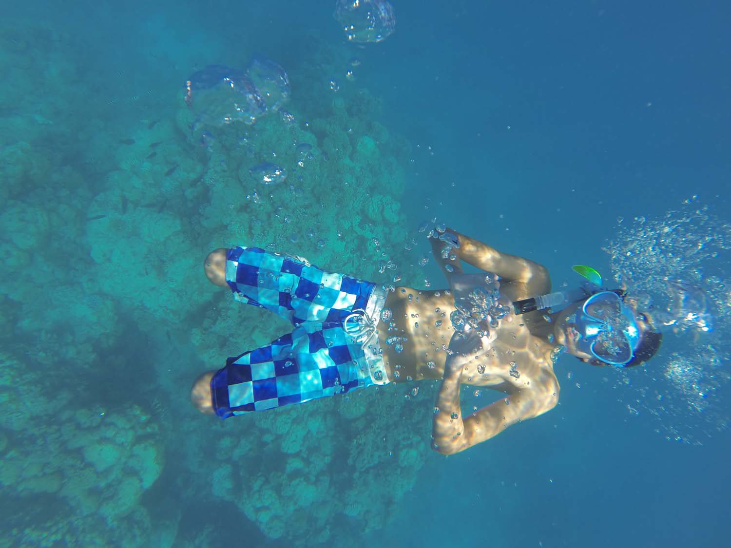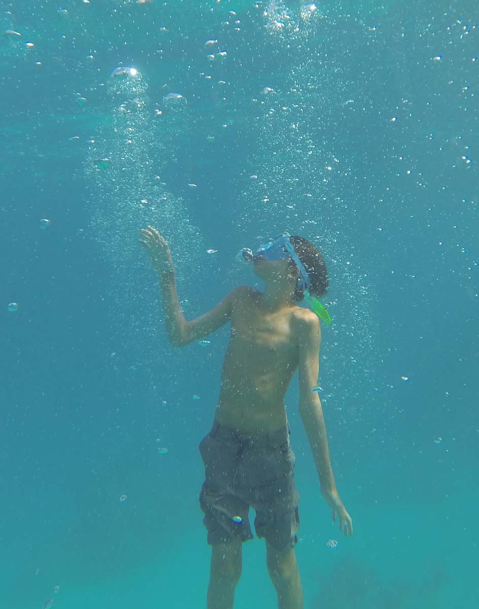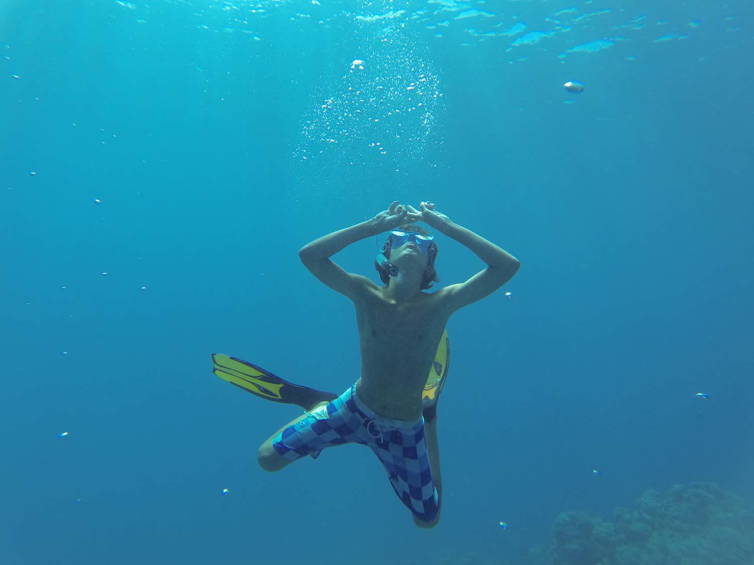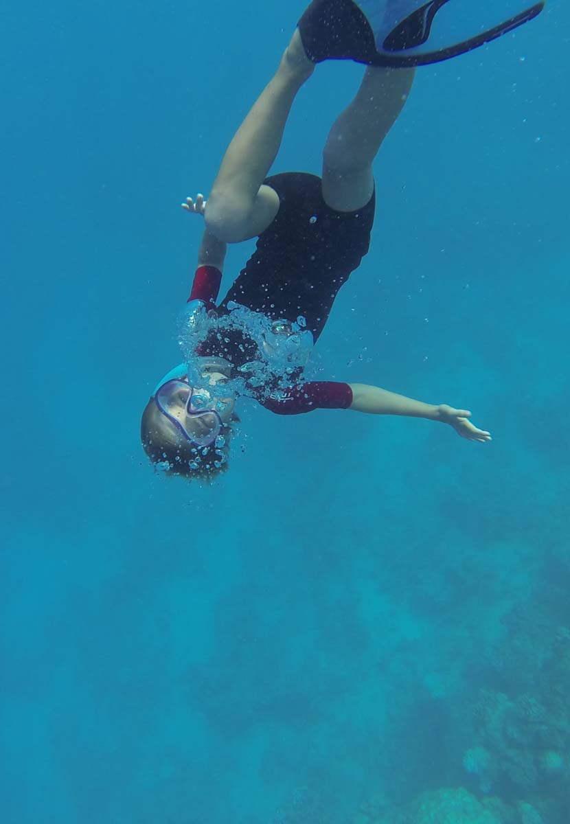 Ces sortie de snorkeling quasi-quotidiens au Tuamotu ont permis aux enfants de bien progresser : Anna nage désormais sans gilet, Arthur plonge à 4/5m de profondeur, et Victor a augmenté son temps d’immersion.