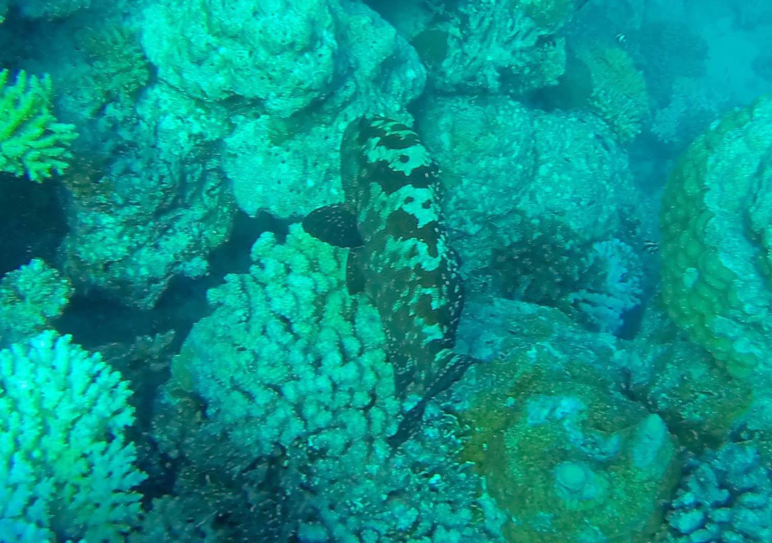 Il faut dire que cela fait 2 semaines que Loïc et victor d’entrainent à la chasse sous marine, ici c’est le spot idéal. Sauf que les requins rodent…A peine le poisson est-il fléché qu’il faut le remonter au bateau. En moins d’une minute, un requin apparait, tournant et virant, cherchant la proie. Le pire encore est quand on flèche un poisson qui s’échappe, blessé : c’est ce qui arrive à Loïc, son gros merou, blessé à l’abdomen se réfugie sous un rocher : un gros requin arrive, tout énervé, tournant autour du rocher, en mode « chasse ». C’est le signal pour nous du repli vers l’annexe, tout le monde sort de l’eau.