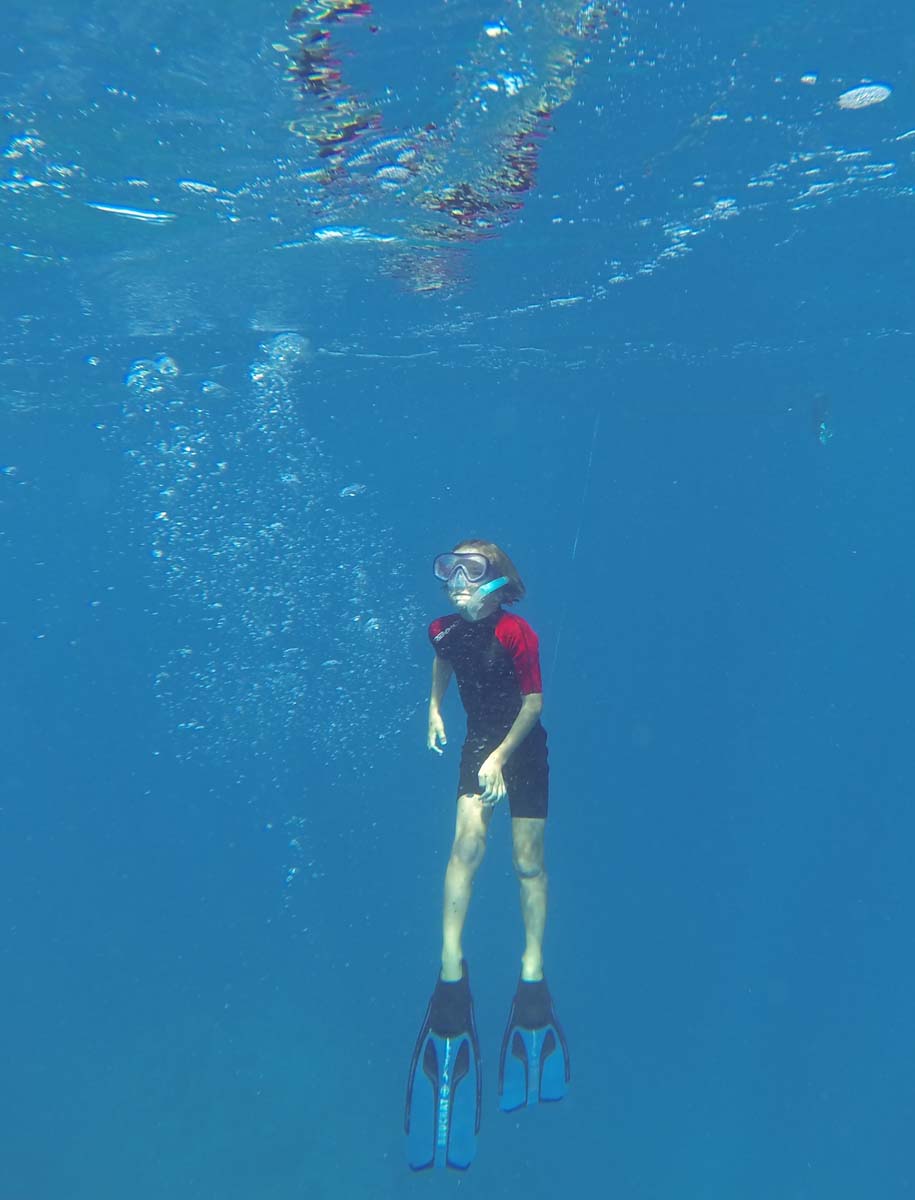 Pour les enfants c’est leur premier « drift » ou « plongée dérivante », ils sont impressionnées, mais savourent le paysage qui défile sous leurs yeux, y compris Anna, qui voit des requins pour la première fois….